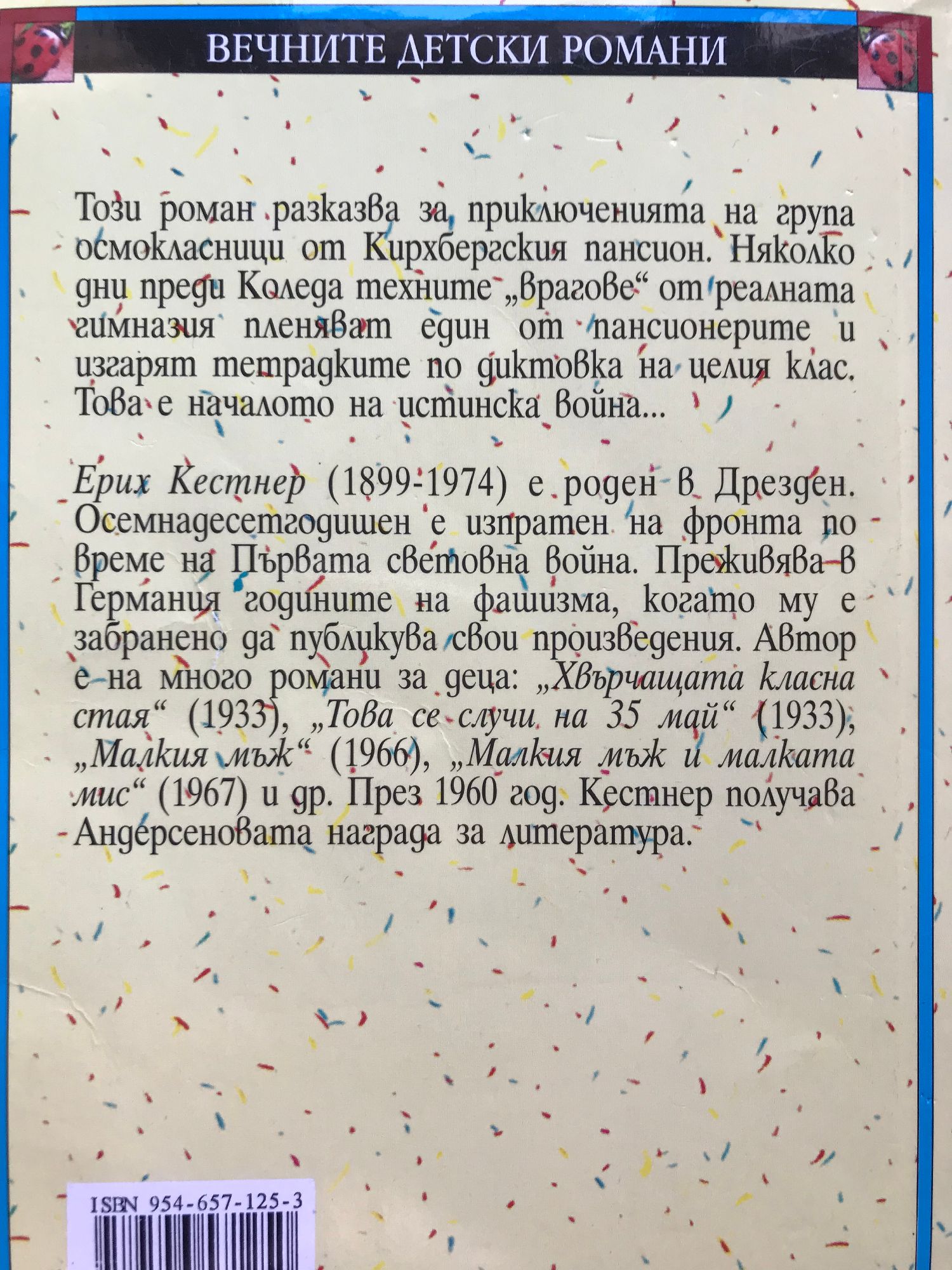 Този роман разказва за приключенията на група осмокласници от Кирхбергския пансион. Няколко дни преди Коледа техните "врагове" от реалната гимназия пленяват един от пансионерите и изгарят тетрадките по диктовка на целия клас. Това е началото на истинска война...