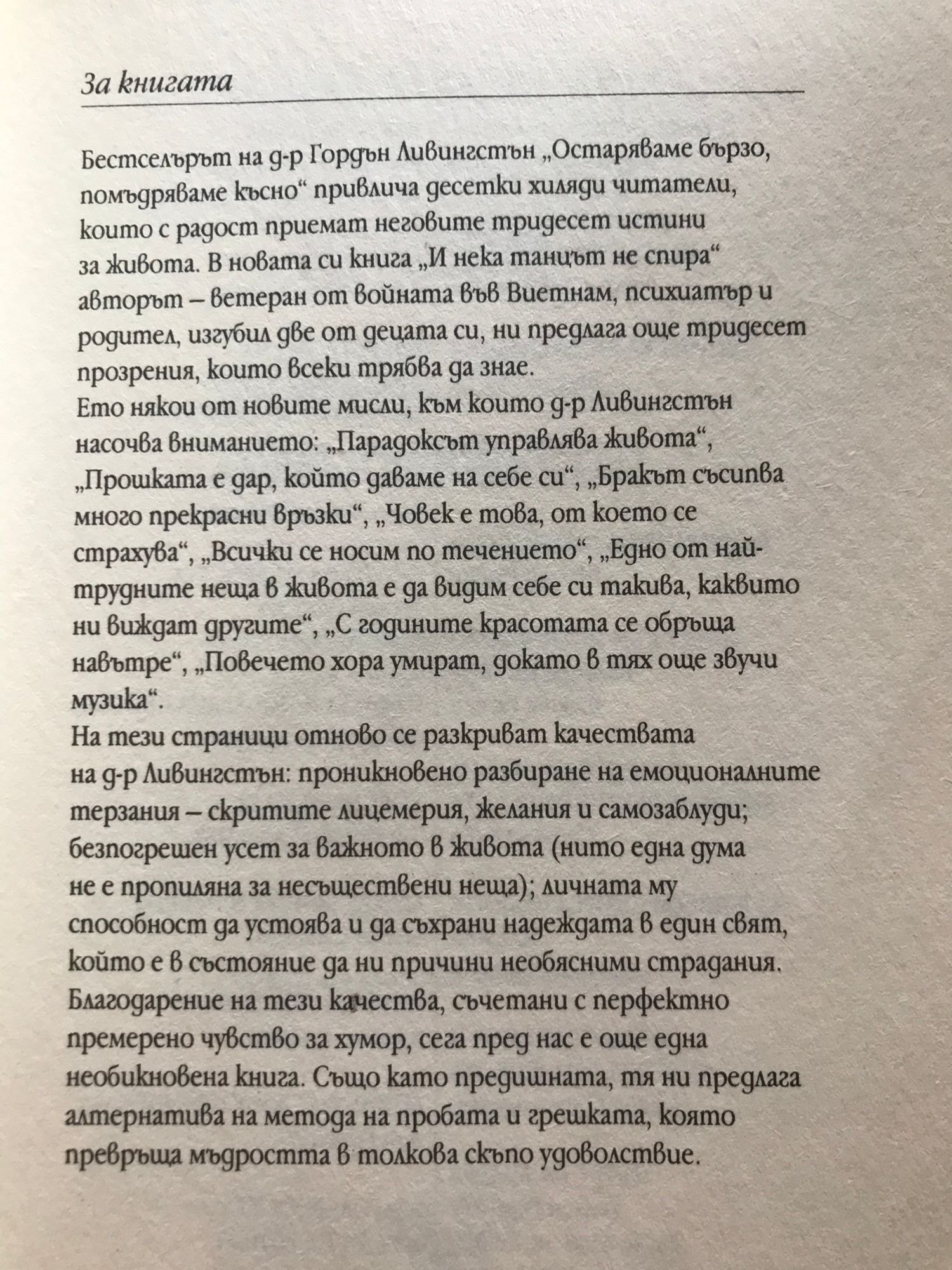 "От страниците на тази книга струят тайните на радостния живот. Откриваме, че най-ценният дар е да простим сами на себе си, особено когато сме заслепени от илюзията, че можем да контролираме всичко."