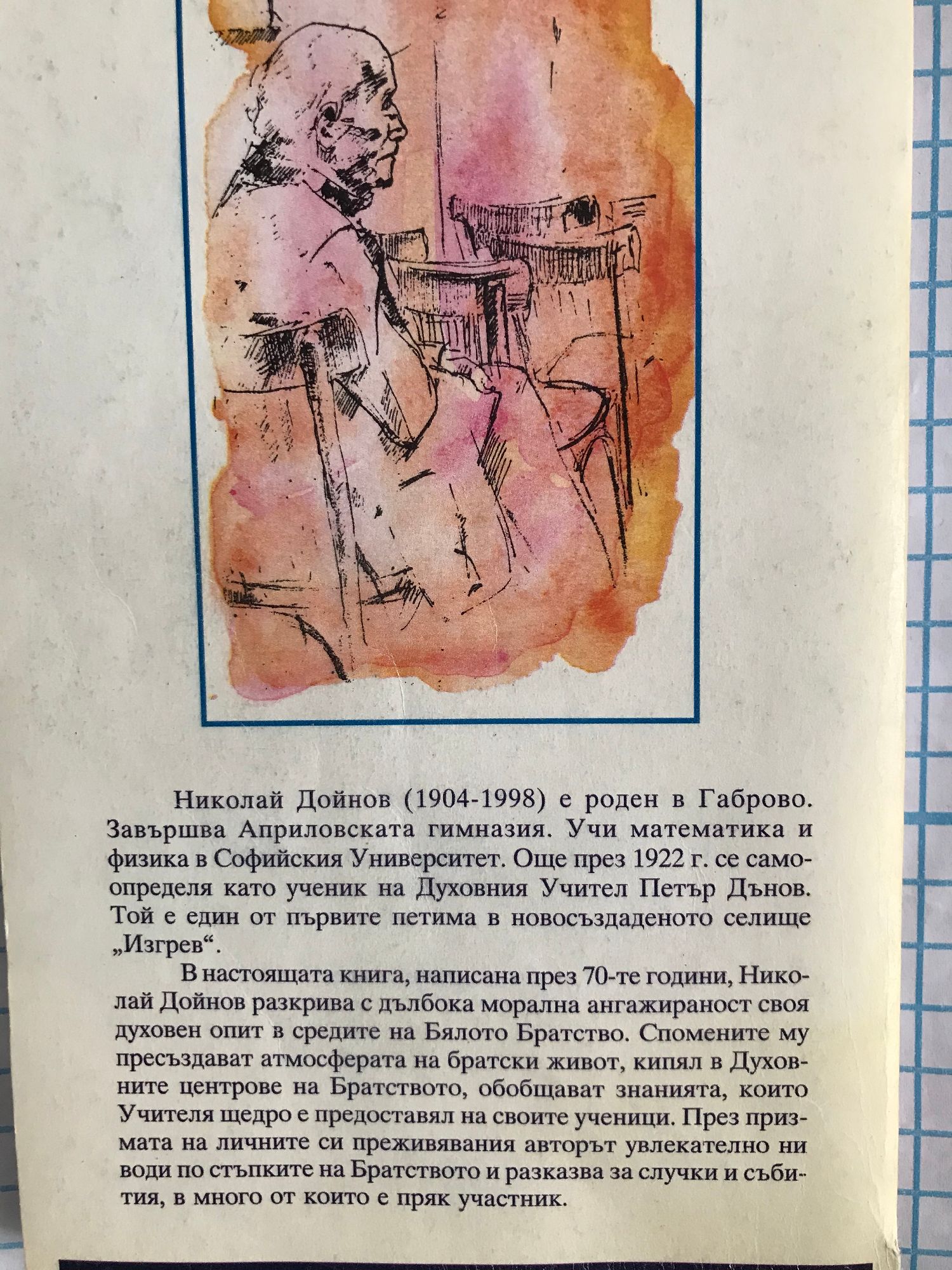 В настоящата книга, написана през 70-те години, Николай Дойнов разкрива с дълбока морална ангажираност своя духовен опит в средите на Бялото Братство. Спомените му пресъздават атмосверата на братски живот, кипял в Духовните центрове на Братството, обобщават знанията, които Учителя щедро е предоставил на своите ученици. През призмата на личните си преживявания авторът увлекателно ни води по стъпките на Братството и разказва за случки и събития, в много от които е пряк участник.