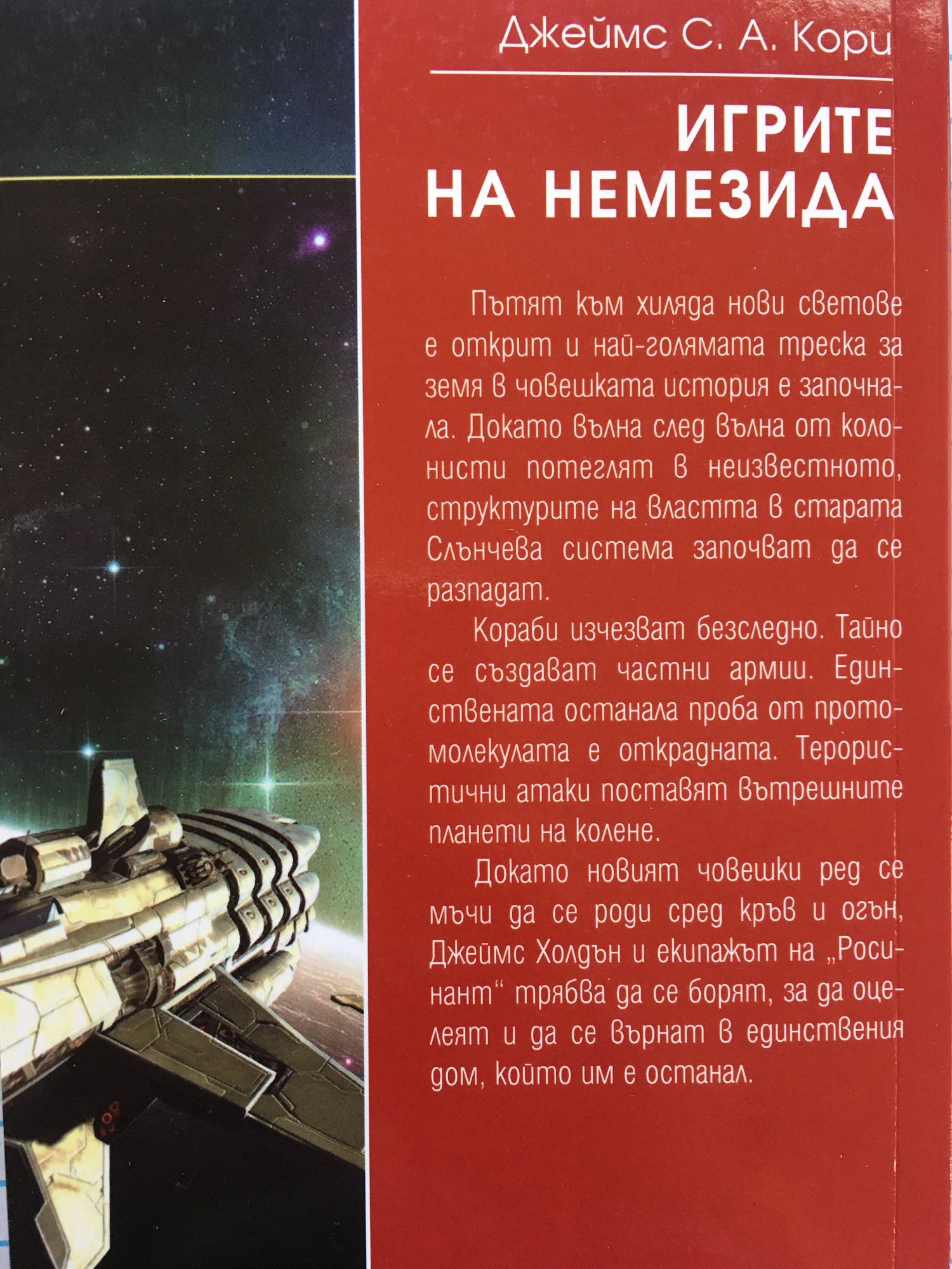 „Игрите на Немезида“ е главоломно научнофантастично приключение, следващо събитията в „Сибола гори“. Пътят към хиляда нови светове е открит и най-голямата треска за земя в човешката история е започнала. Докато вълна след вълна от колонисти потеглят в неизвестното, структурите на властта в старата Слънчева система започват да се разпадат. Кораби изчезват безследно. Тайно се създават частни армии. Единствената останала проба от протомолекулата е открадната. Терористични атаки поставят вътрешните планети на колене. Докато новият човешки ред се мъчи да се роди сред кръв и огън, Джеймс Холдън и екипажът на „Росинант“ трябва да се борят, за да оцелеят и да се върнат в единствения дом, който им е останал.