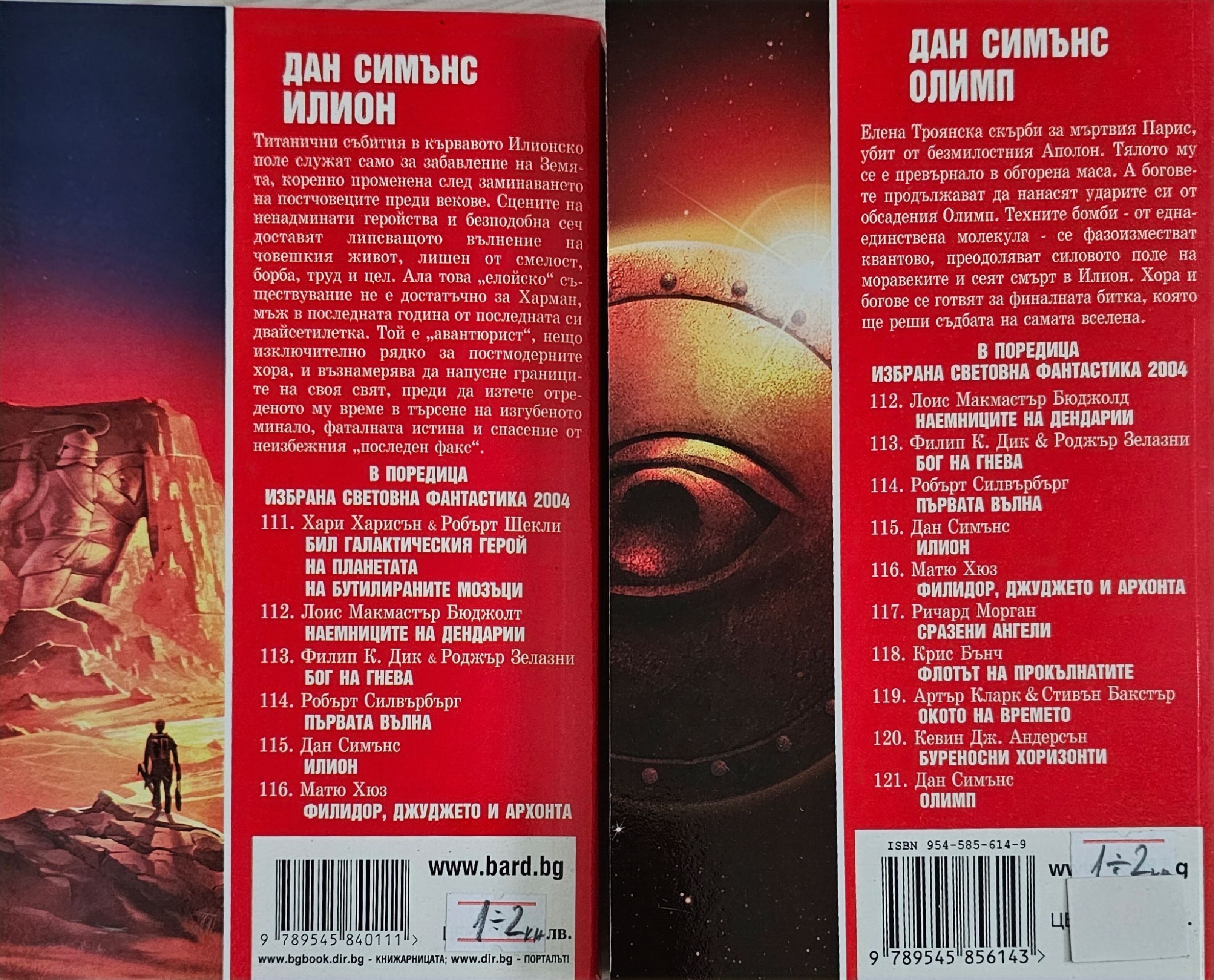 47,04 € / 92,00 лв.Много добро състояние на книжното тяло. С надлъжно прегъване (от четене) по гръбчето на "Олимп"; незначителни следи от употреба по другата книга.