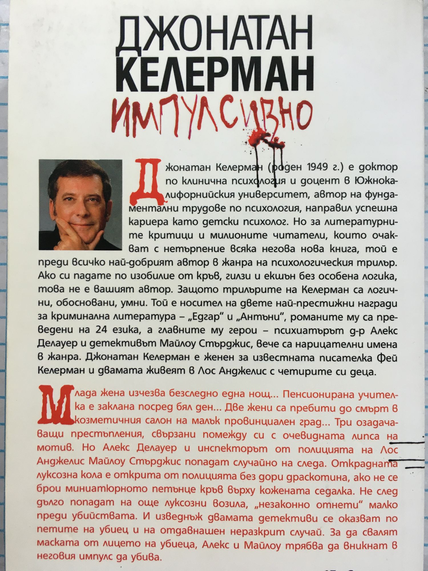Млада жена изчезва безследно една нощ... Пенсионирана учителка е заклана посред бял ден... Две жени са пребити до смърт в козметичния салон на малък провинциален град... Три озадачаващи престъпления, свързани помежду си с очевидната липса на мотив. Но Алекс Делауер и инспекторът от полицията на Лос Анджелис Майлоу Стърджис попадат случайно на следа. Открадната луксозна кола е открита от полицията без дори драскотина, ако не се брои миниатюрното петънце кръв върху кожената седалка. Не след дълго попадат на още луксозни возила, „незаконно отнети“ малко преди убийствата. И изведнъж двамата детективи се оказват по петите на убиец и на отдавнашен неразкрит случай. За да свалят маската от лицето на убиеца, Алекс и Майлоу трябва да вникнат в неговия импулс да убива.