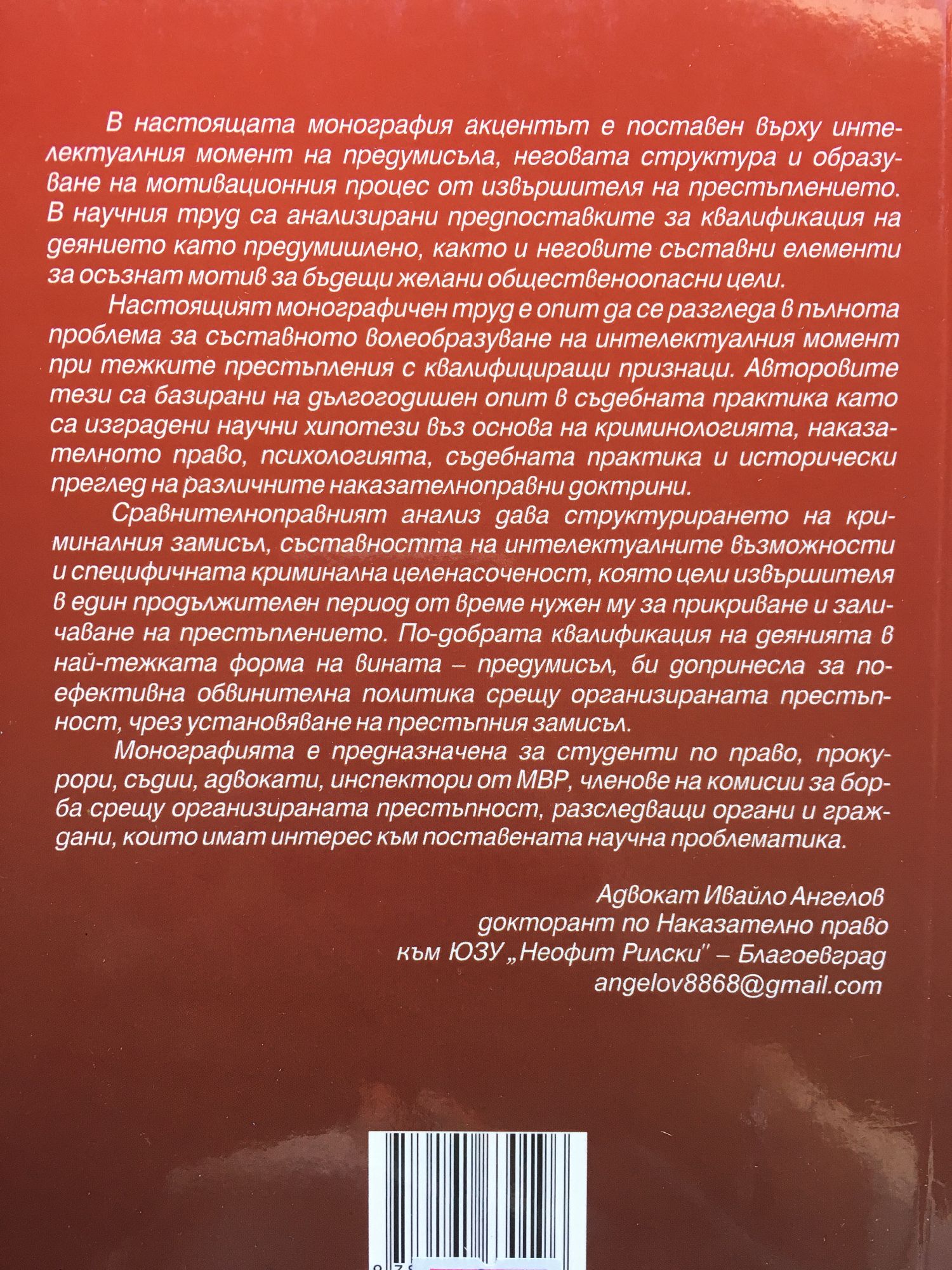 Правен анализ на интелектуалния момент при предумишлените престъпления. Монография
