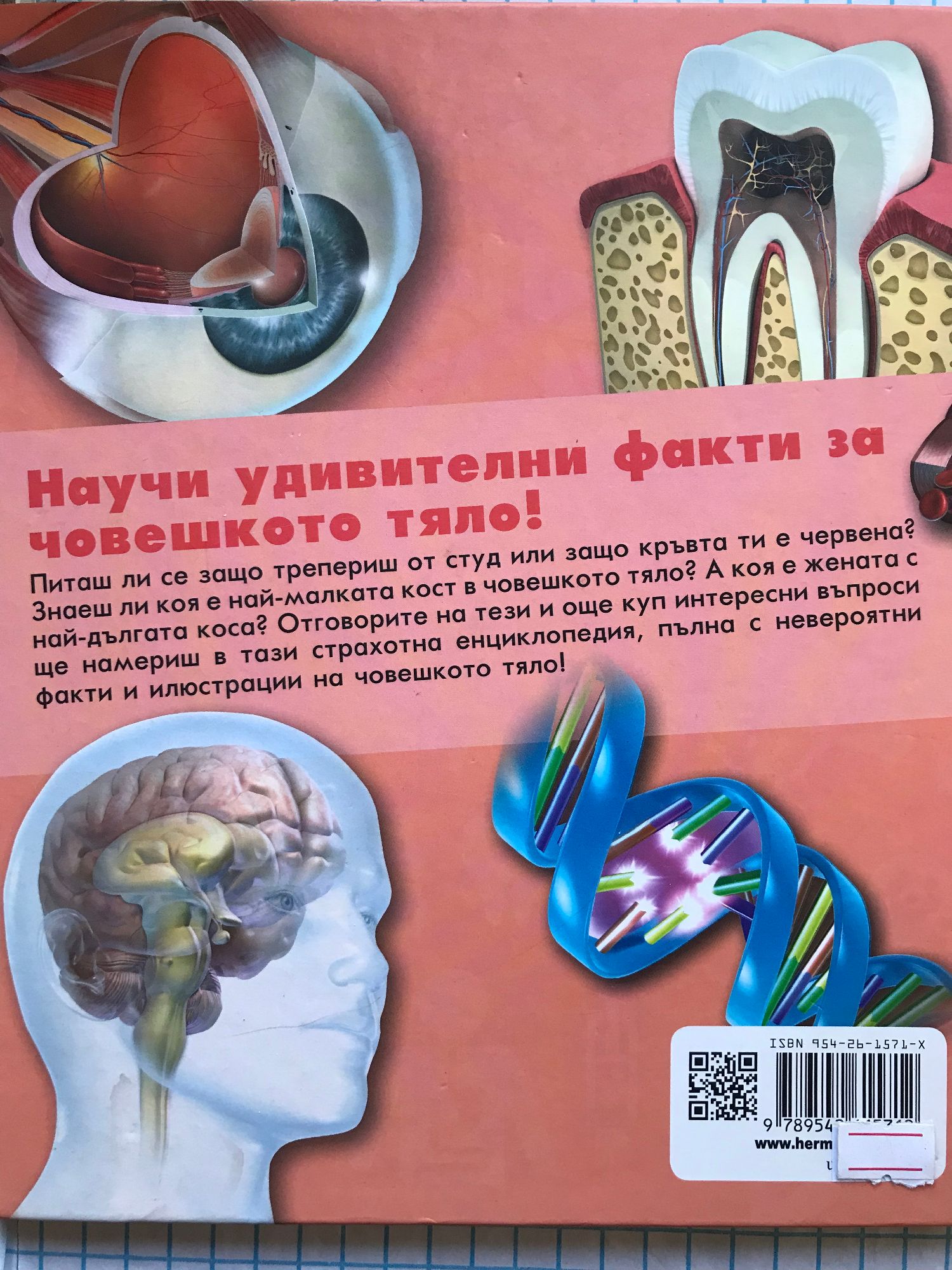 Научи удивителни факти за човешкото тяло. Задавали ли сте си някой от следните въпроси: Защо треперим от студ, или защо кръвта ни е червена? Коя е най-малката кост в човешкото тяло? А коя е жената с най-дългата коса? Отговорите на тези и още куп интересни въпроси ще намериш в тази страхотна енциклопедия, пълна с невероятни факти и илюстрации на човешкото тяло!
