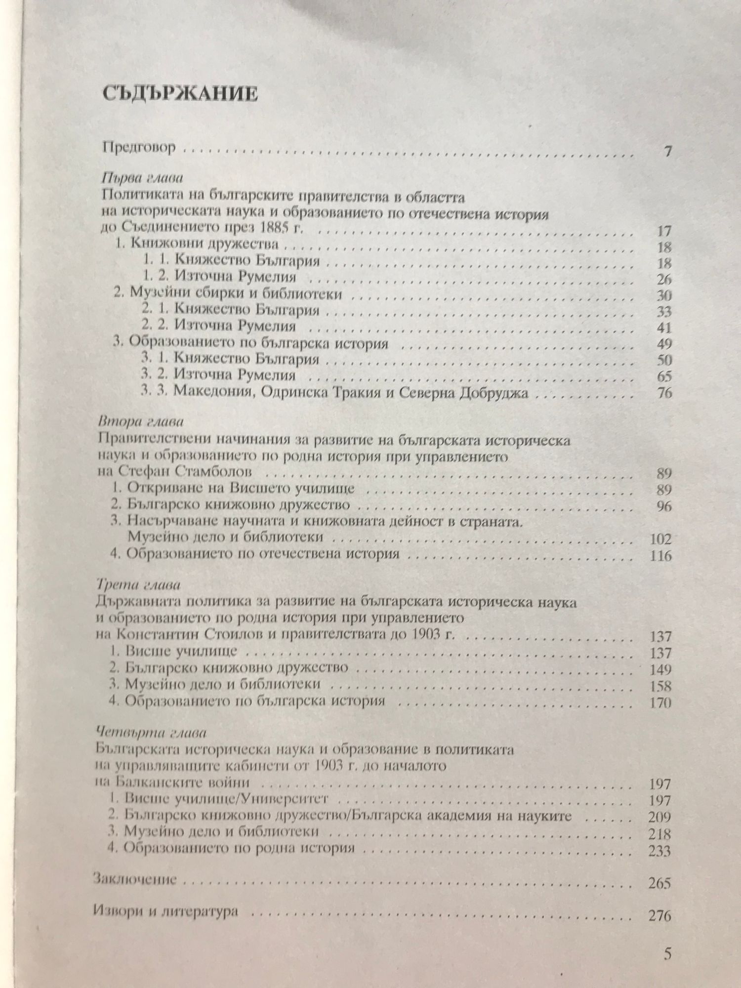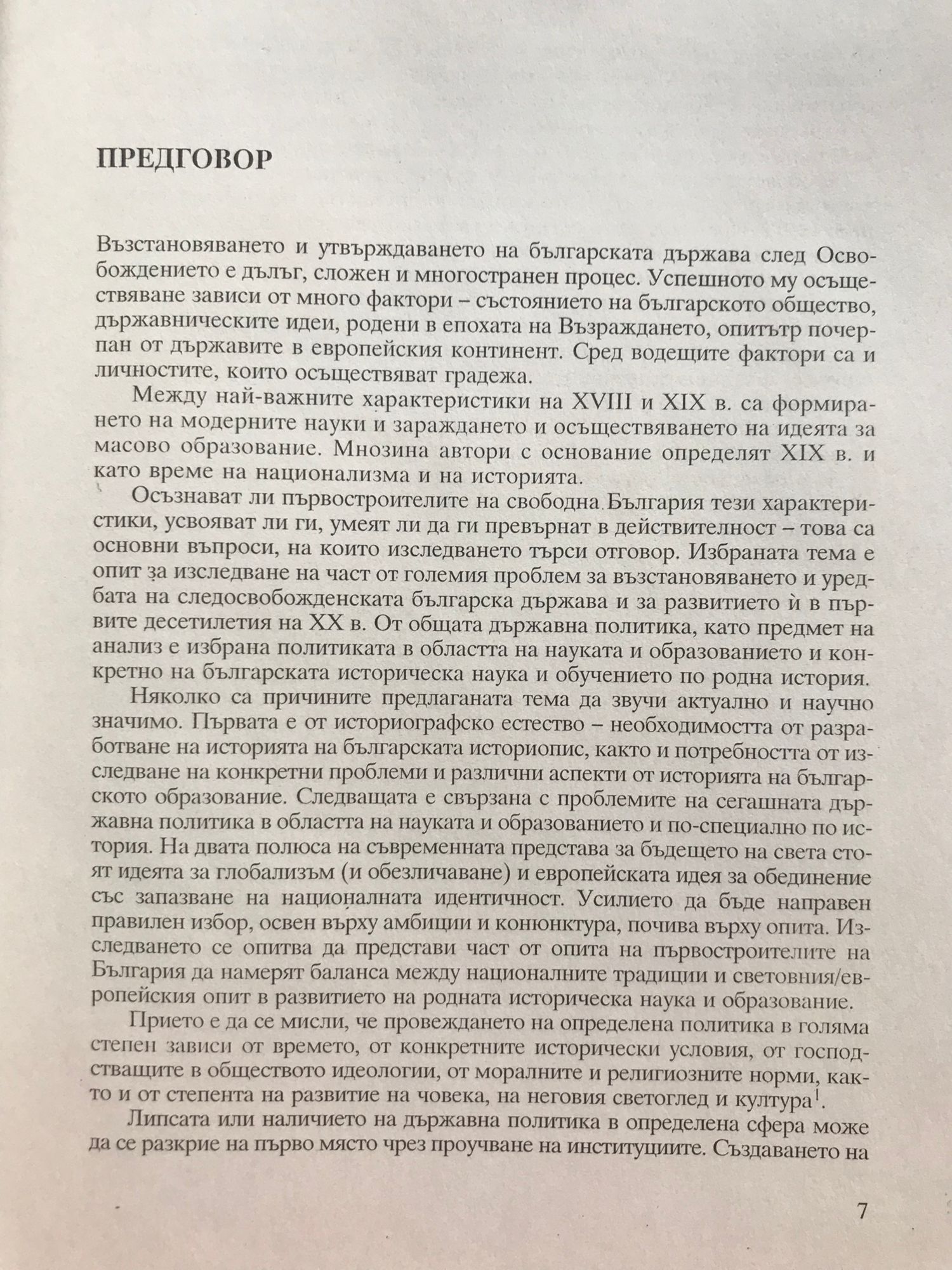 Монографията "Историческата наука и образование в политиката на българската държава 1878 - 1912 г." е пръв опит да се представят действията и законотворческите инициативи на българските правителства за развитието на отечествената историческа наука и обучението по родна история за посочения период. В центъра на изследването са Министерството на Народното просвещение, правителствата, Народното събрание, Българското Книжовно дружество (БАН) и Висшето училище (Софийският университет); Народните библиотеки и музеи в София и Пловдив; образователната система и просветното дело с поглед преди всичко към обучението по българска история. Засегнато е и обучението по родна история в Македония, Одринска Тракия и Северна Добруджа. Изследването показва усилията на първостроителите да намерят баланса между националните традиции и световния/европейския опит в развитието на историческата наука и образование. За да се види държавническият подход в миналото към науката и образованието, към интелигенцията, да се осмисли и да послужи за опора в днешния градеж на България.