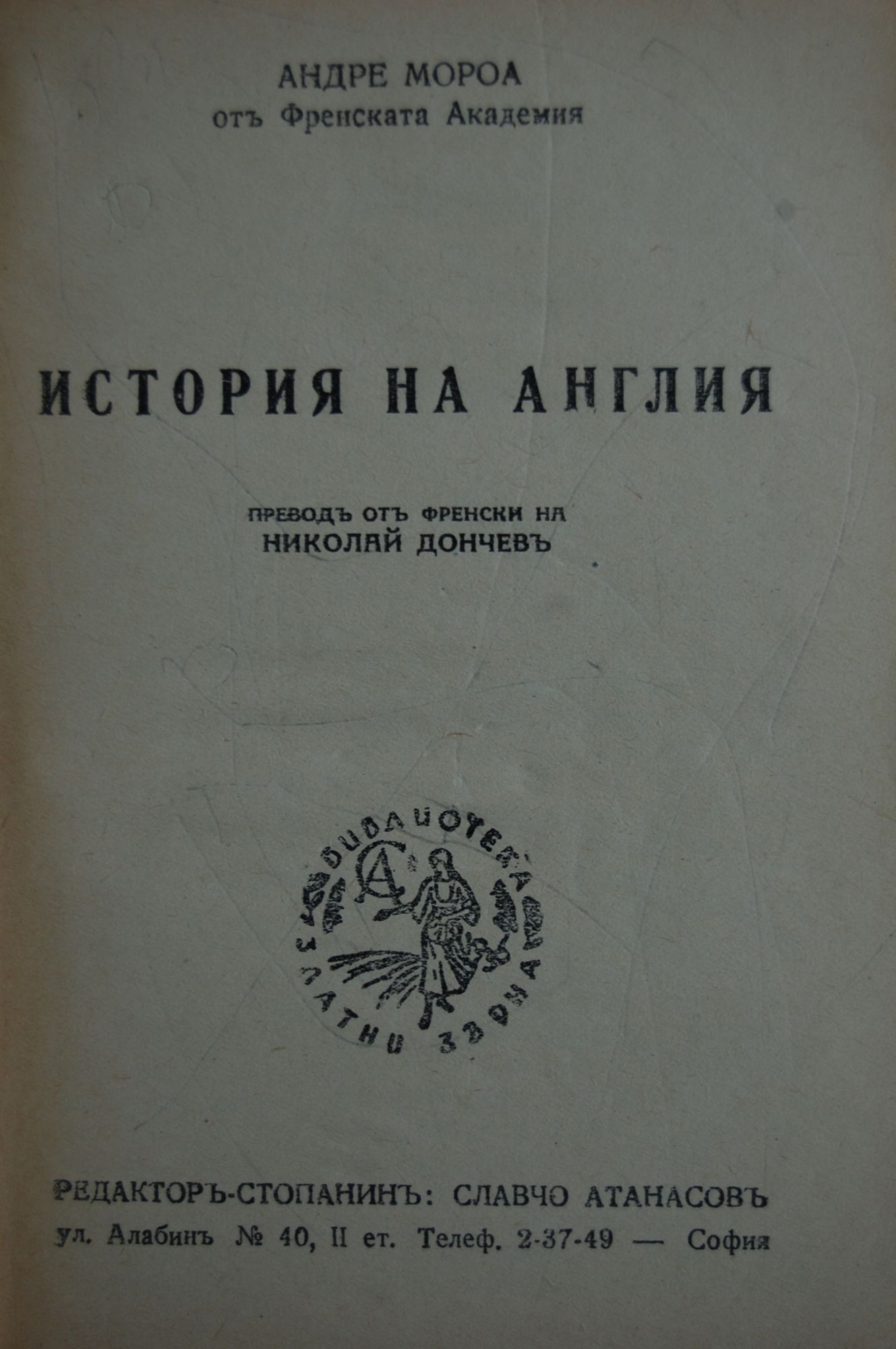 30,00 лв. / 15,34 €Отлично състояние на книжното тяло. С твърди корици , преподвързана