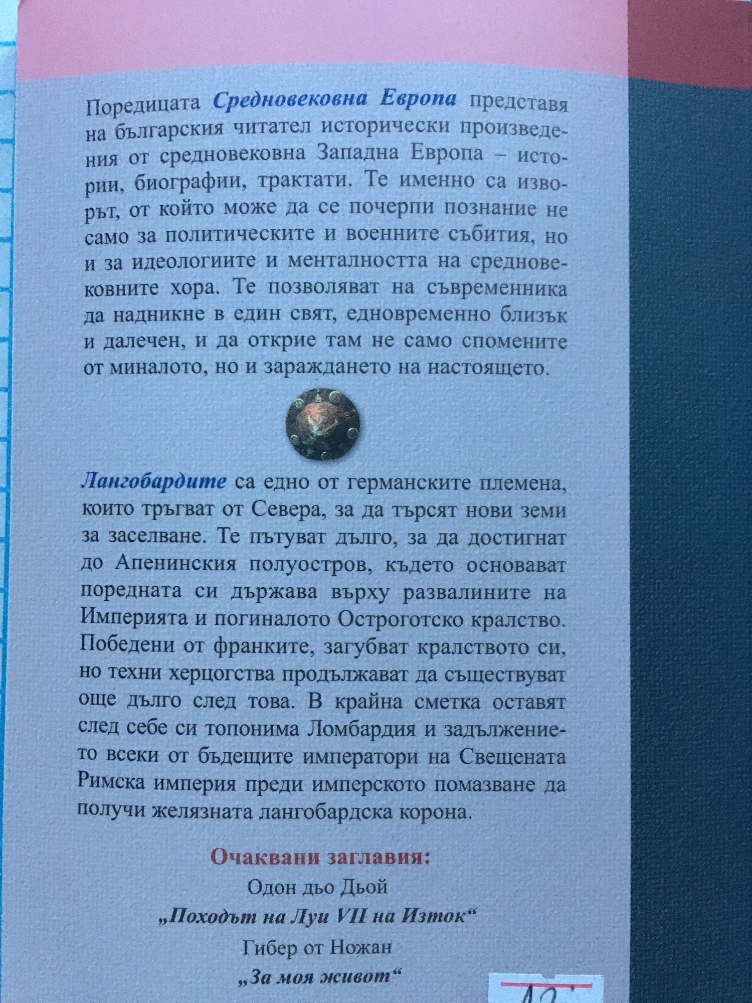 Поредицата Средновековна Европапредставя на българския читател исторически произведения от средновековна Западна Европа – истории, биографии, трактати. Те именно са изворът, от който може да се почерпи познание не само за политическите и военните събития, но и за идеологиите и менталността на средновековните хора. Те позволяват на съвременника да надникне в един свят, едновременно близък и далечен, и да открие там не само спомените от миналото, но и зараждането на настоящето. Лангобардите са едно от германските племена, които тръгват от Севера, за да търсят нови земи за заселване. Те пътуват дълго, за да достигнат до Апенинския полуостров, където основават поредната си държава върху развалините на Империята и погиналото Остроготско кралство. Победени от франките, загубват кралството си, но техни херцогства продължават да съществуват още дълго след това. В крайна сметка оставят след себе си топонима Ломбардия и задължението всеки от бъдещите императори на Свещената Римска империя преди имперското помазване да получи желязната лангобардска корона.