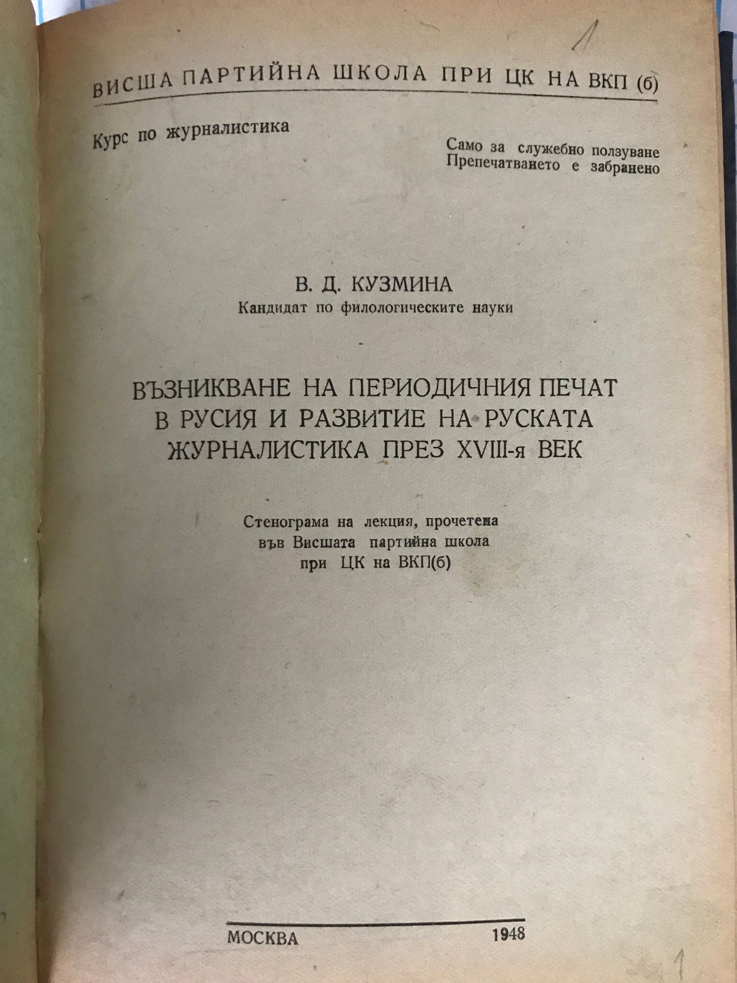 Сборник, брошури "Висша партийна школа на ВКП (б) - курс по журналистика