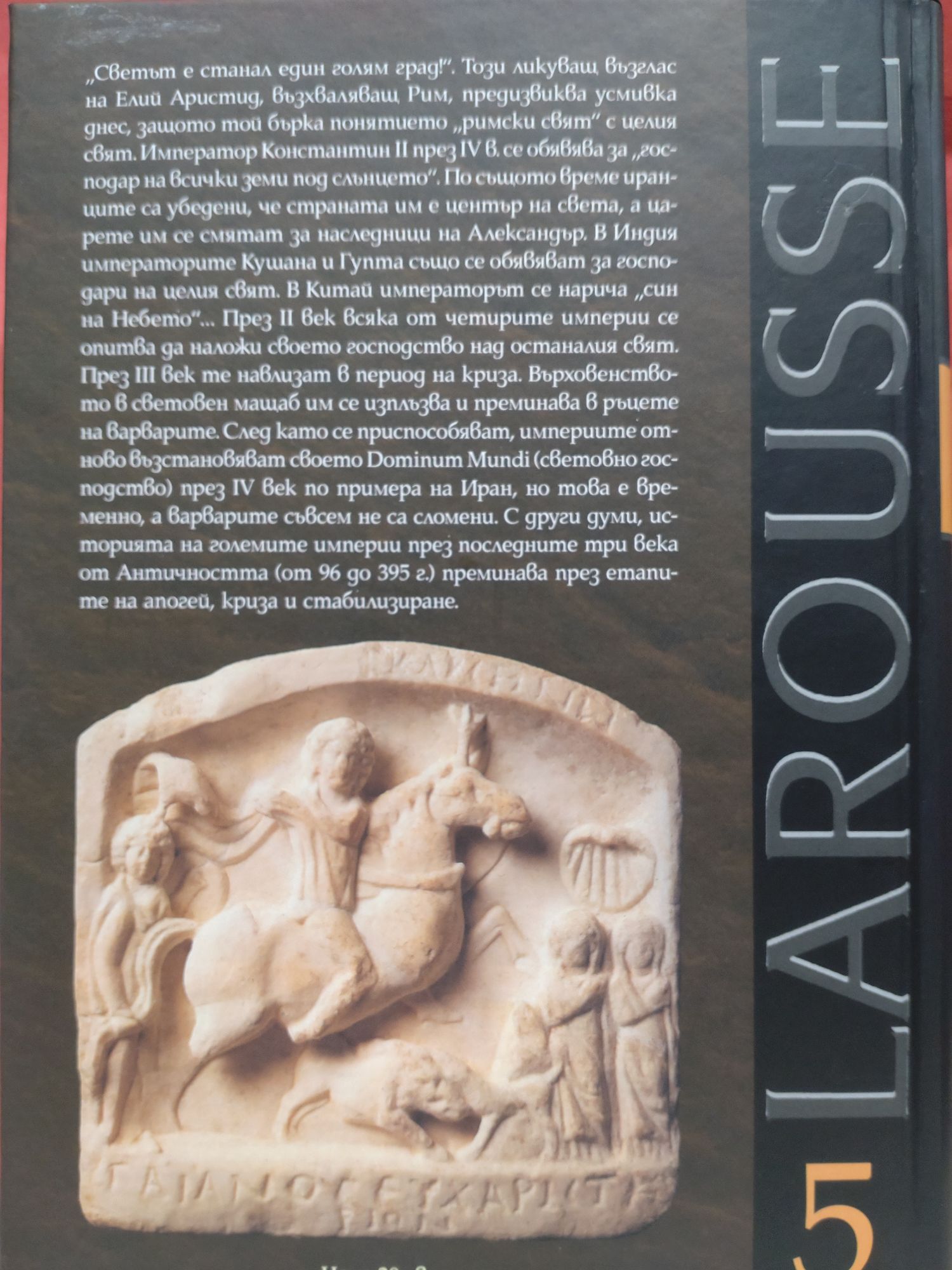 "Светът е станал един голям град!" Този ликуващ възглас на Елий Аристид, възхваляващ Рим, предизвиква усмивка днес, защото той бърка понятието "римски свят" с целия свят. Императорът Константин II през 4 век се обявява за "господар на всички земи под слънцето". По същото време иранците са убедени, че страната им е център на света, а царете им се смятат за наследници на Александър. В Индия императорите Кушана и Гупта също се обявяват за господари на целия свят. В Китай императорът се нарича "син на небето"...