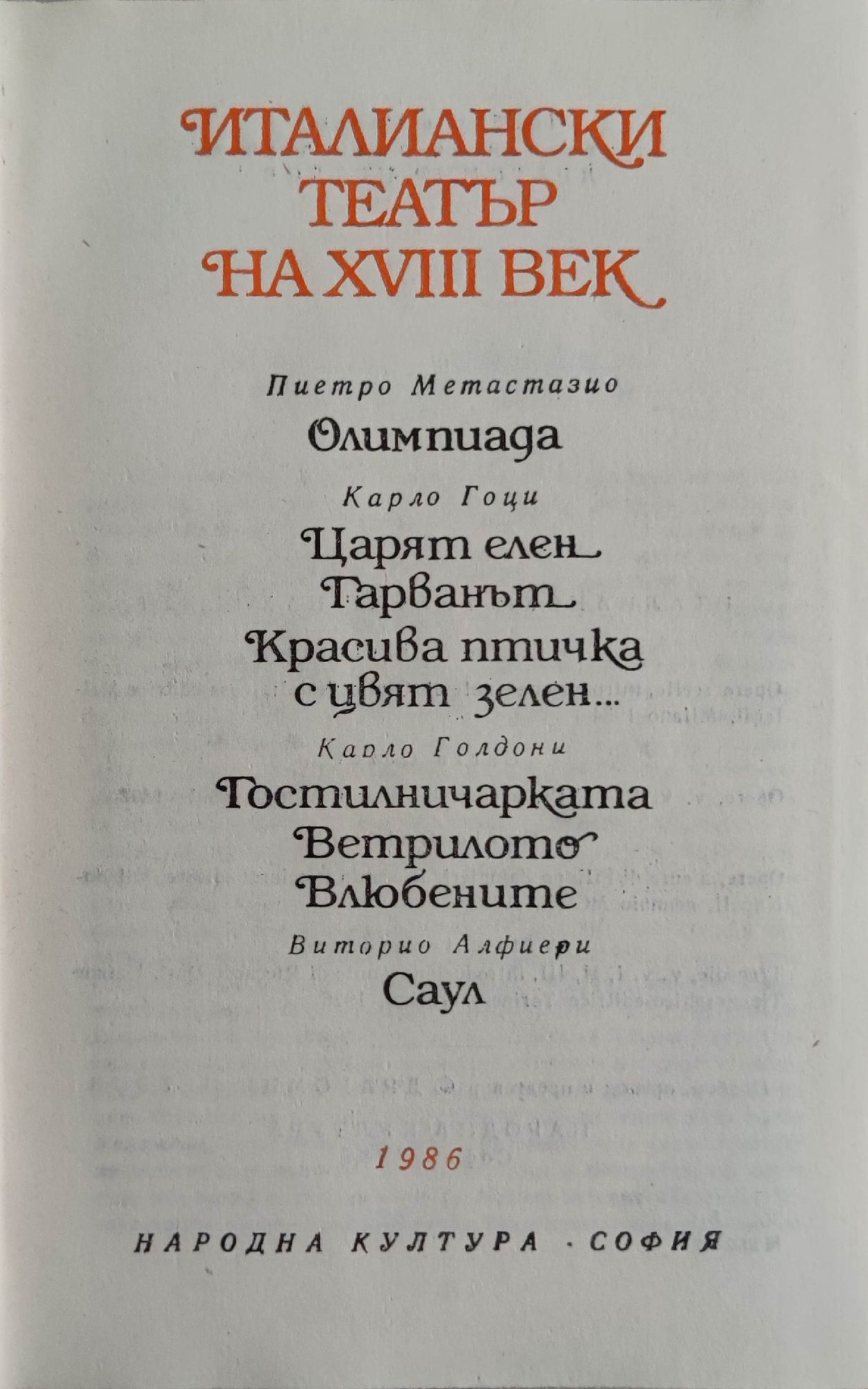 от Пиетро Метастазио, Карло Гоци, Карло Голдони, Виторио Алфиери