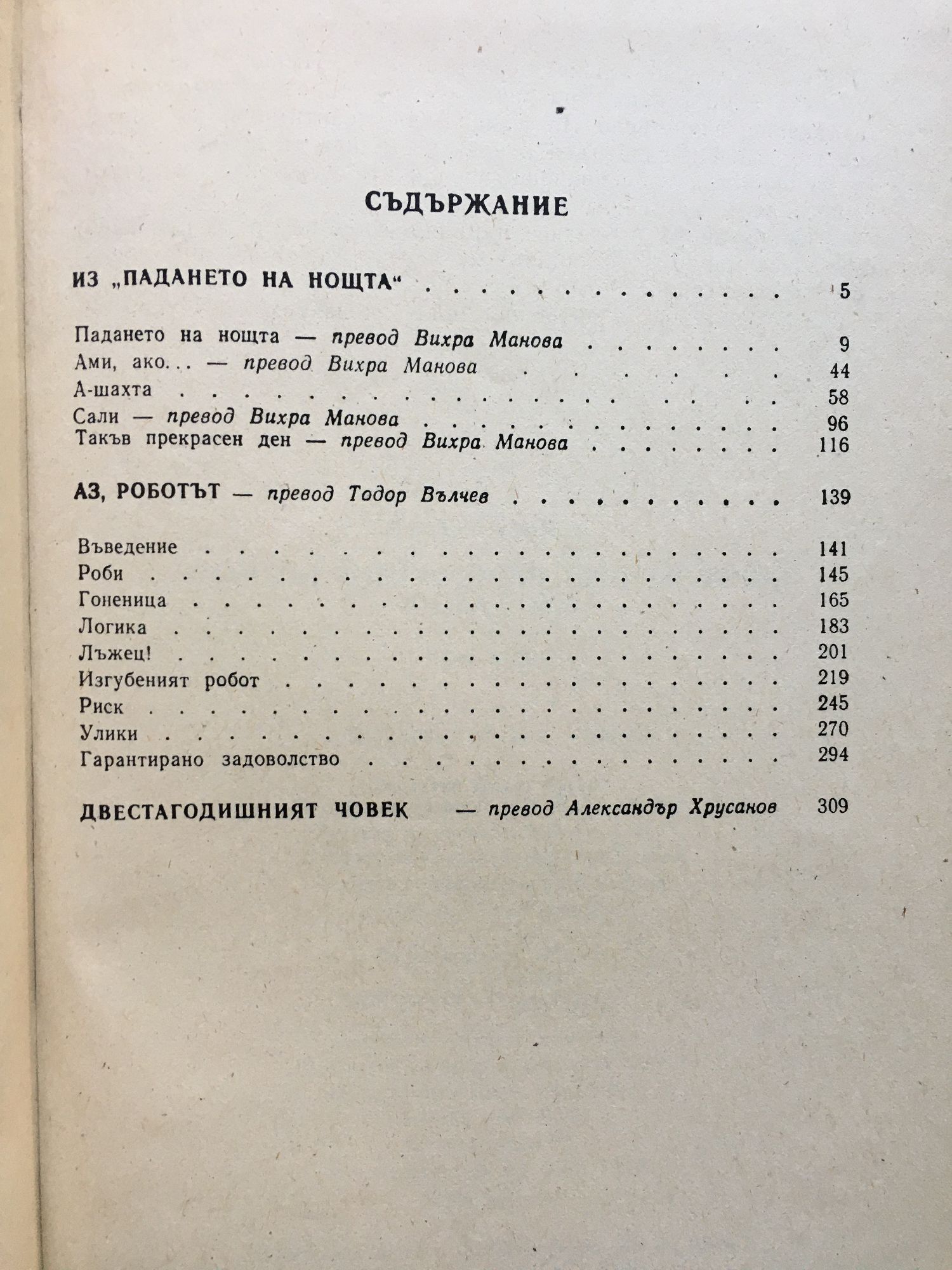 Из "Падането на нощта". Аз, роботът. Двеста годишният човек