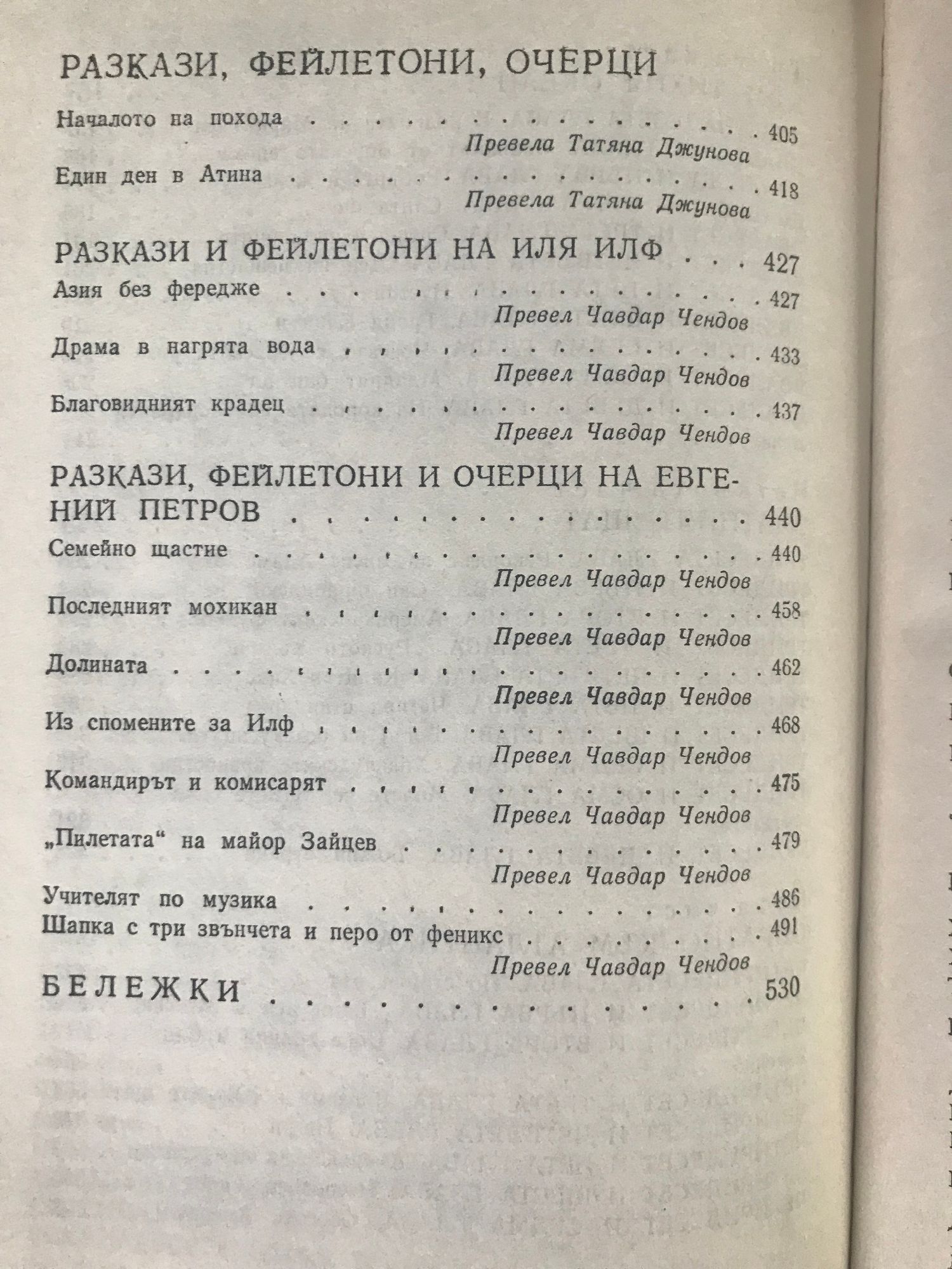 Том 1. Дванадесетте стола. 1001 ден или новата Шехеразада. - издание първо и четвърто Том 2. Златният телец. Разкази. Фейлетони. - издание второ и трето Том 3. Едноетажна Америка. Разкази. Фейлетони.Очерци. - издание първо и второ