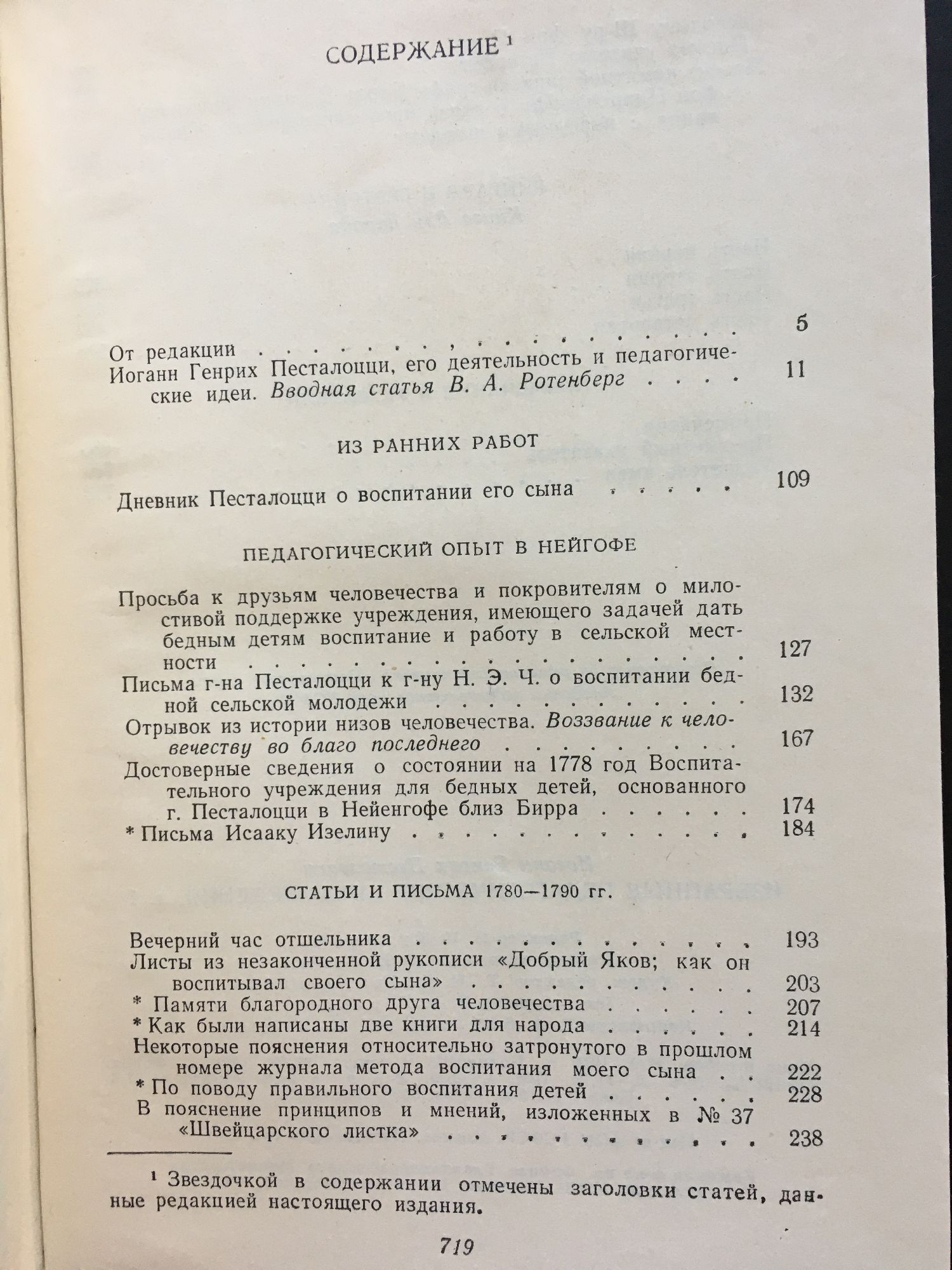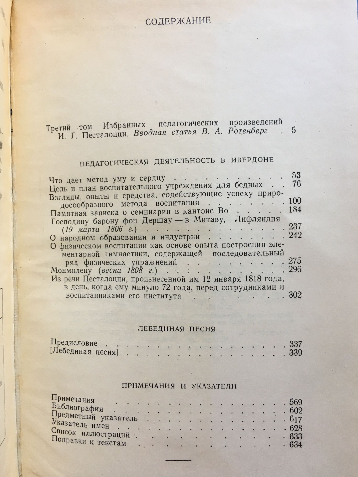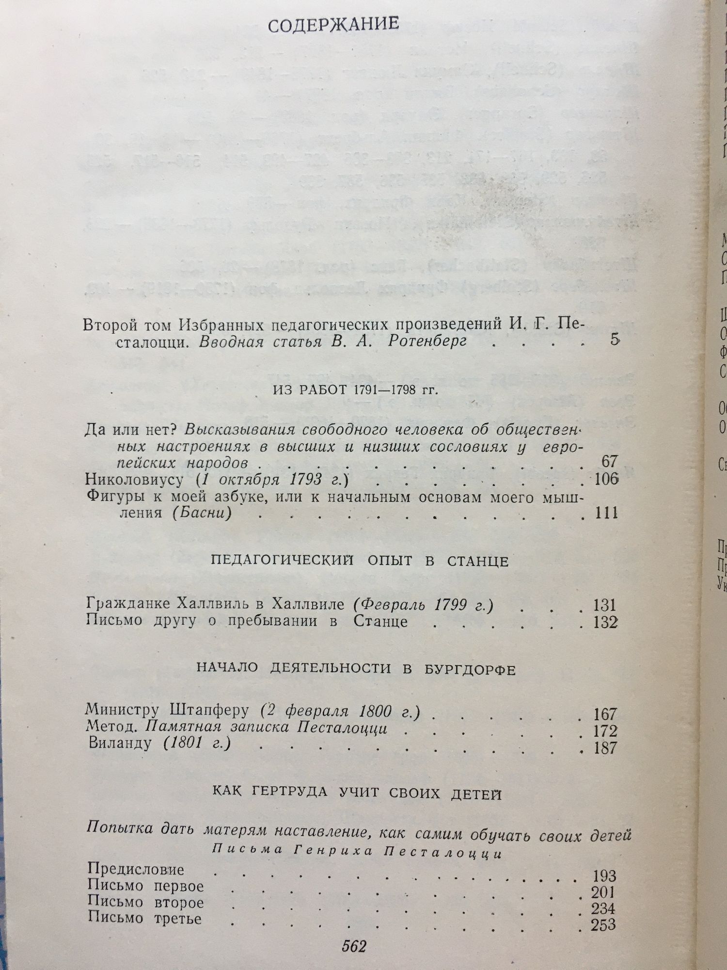 Том 1: 1774 - 1790. Из ранних работ. Педагогический опы в нейгофе. Статьи и письма 1780 - 1790. Лингард и Гертруда. Том 2: 1791 - 1804. Из работ 1791 - 1798. Педагогиеский опыт в станце. Начало деятельности в Бургдорфе. Как Гертруда учит своих Детей. Статьи и письма 1802 - 1804. Том 3: 1805 - 1827. Педагогическая деятельность в Ивердоне. Лебединая песня.