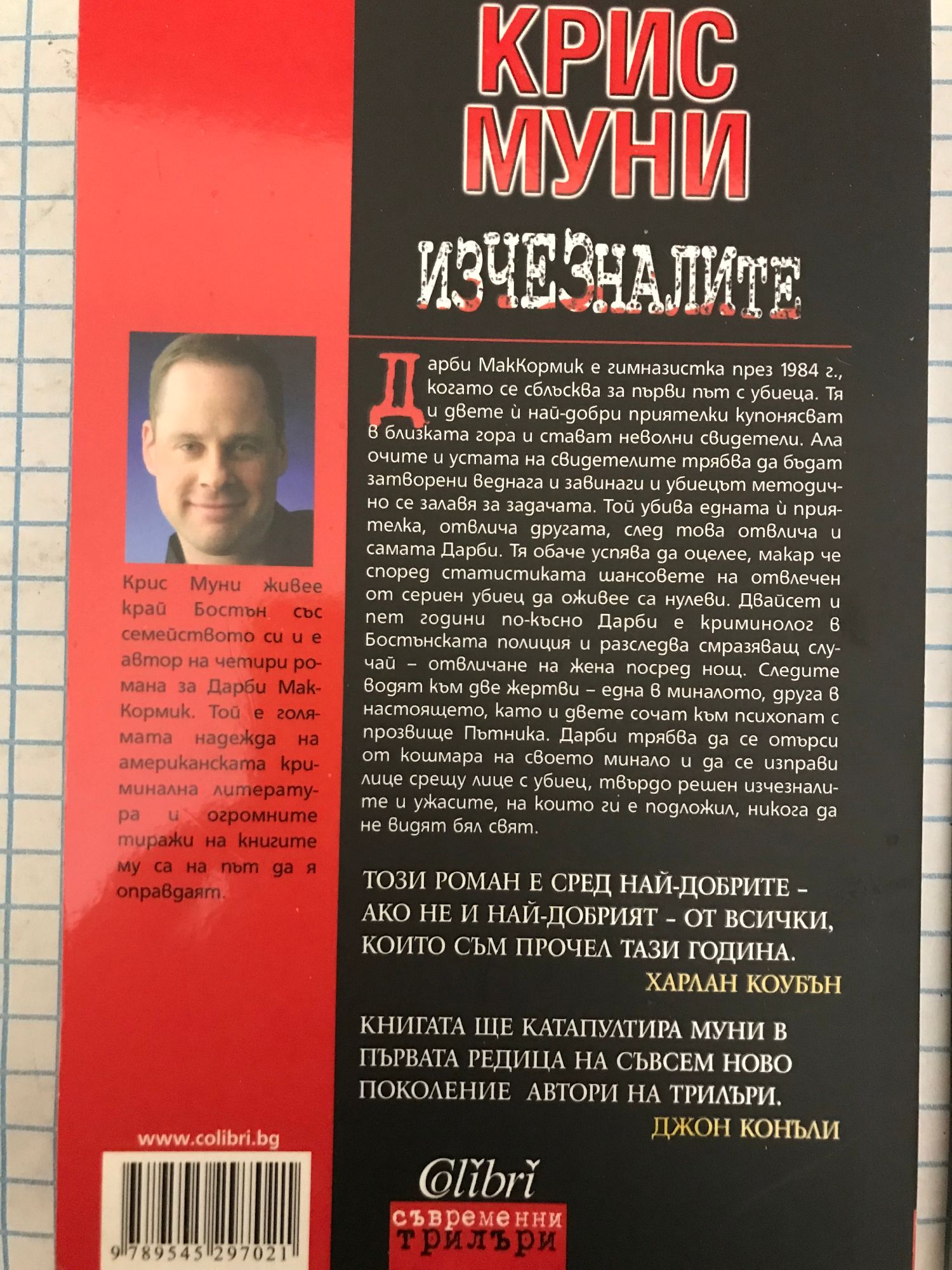Дарби МакКормик е гимназистка през 1984 г., когато се сблъсква за първи път с убиеца. Тя и двете й най-добри приятелки купонясват в близката гора и стават неволни свидетели. Ала очите и устата на свидетелите трябва да бъдат затворени веднага и завинаги и убиецът методично се залавя за задачата. Той убива едната й приятелка, отвлича другата, след това отвлича и самата Дарби. Тя обаче успява да оцелее, макар че според статистиката шансовете на отвлечен от сериен убиец да оживее са нулеви. Двайсет и пет години по-късно Дарби е криминолог в Бостънската полиция и разследва смразяващ случай – отвличане на жена посред нощ. Следите водят към две жертви – една в миналото, друга в настоящето, като и двете сочат към психопат с прозвище Пътника. Дарби трябва да се отърси от кошмара на своето минало и да се изправи лице срещу лице с убиец, твърдо решен изчезналите и ужасите, на които ги е подложил, никога да не видят бял свят. ИСТОРИЯТА ТЕ СГРАБЧВА ЗА ГЪРЛОТО. МАЙКЪЛ КОНЪЛИ ТОЗИ РОМАН Е СРЕД НАЙ-ДОБРИТЕ – АКО НЕ И НАЙ-ДОБРИЯТ – ОТ ВСИЧКИ, КОИТО СЪМ ПРОЧЕЛ ТАЗИ ГОДИНА. ХАРЛАН КОУБЪН КНИГАТА ЩЕ КАТАПУЛТИРА МУНИ В ПЪРВАТА РЕДИЦА НА СЪВСЕМ НОВО ПОКОЛЕНИЕ АВТОРИ НА ТРИЛЪРИ. ДЖОН КОНЪЛИ ПЛАШЕЩ РОМАН. ПЛАШЕЩ ТАЛАНТ. ЛИЙ ЧАЙЛД Крис Муни живее край Бостън със семейството си и е автор на четири романа за Дарби МакКормик. Той е голямата надежда на американската криминална литература и огромните тиражи на книгите му са на път да я оправдаят.