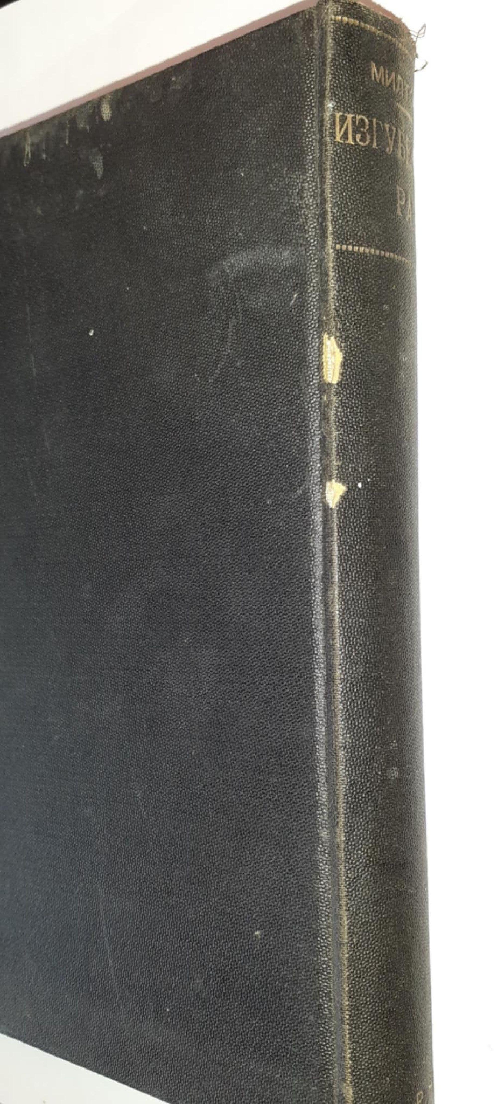 200,00 лв. / 102,26 €Много добро състояние на книжното тяло. Един предтитулен лист е отчасти подлепен с бяла хартиена лента (в сгъвката при гръбчето). Пожълтели страници, повечето без или с незначителни следи от употреба; няколко с малко закъсване в горен ляв ъгъл; пет с малки кафеникави петна, текстът е четим. Около средата на книгата един лист е с нарушена цялост на вътрешното поле, 3-4 думи в съотв. горен ъгъл липсват; друг лист е с малка реставрация. Следи от влага по долните полета на шест последни листове, два от които са реставрирани там, а съседният има нарушена цялост пак там.
