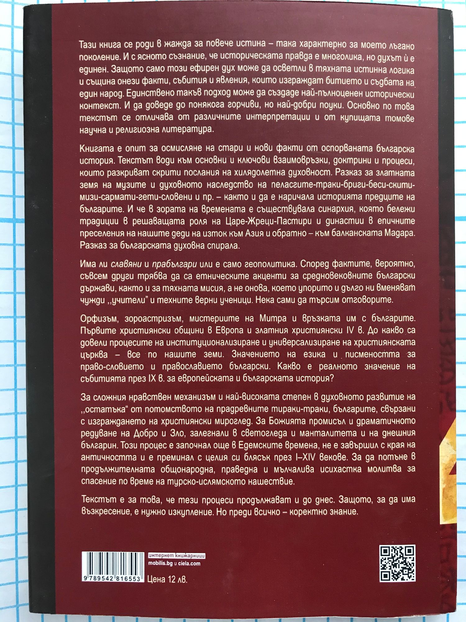 Това нe е религиозен, нито научен труд. Но съдържа по малко и от двете. Не е и някаква еретическа проповед. По-скоро е резултат от търсене на по-правдив контекст изпод разделеното и грубо манипулирано знание – за повече светлина и лек. Едно пътуване в миналото, плод на размисъл, загриженост и проникновение, породени от ,,съкратените времена", в които живеем. Редица събития очертават крайното становище, че е в ход битката за бъдещето, ,,сблъсъкът на цивилизациите". Отключват се процеси на все по-безмилостни религиозни, културни, икономически, гео-политически и все по-кървави военно-терористични противопоставяния. Тлеем в мизерия, завист, алчност, агресия, наводнения и бедствия. Самовзривяваме се.