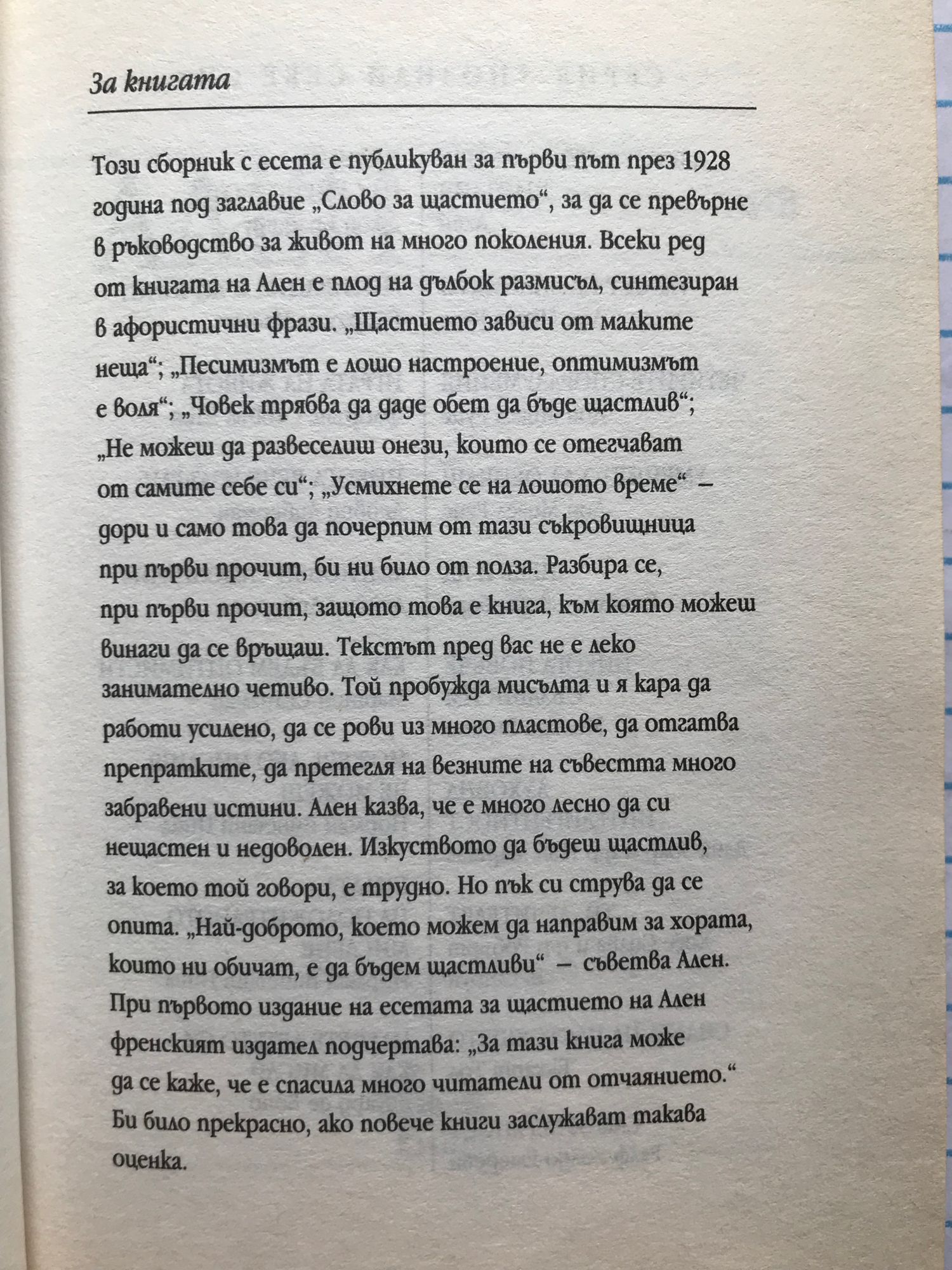 Постоянна работа и победа след победа - ето формулата на щастието. ... Щастието е възнаграждение, спохождащо онези, които не са го търсели. Вярно е, че трябва да мислим за щастието на другите, но по-доброто, което можем да направим за онези, които ни обичат, е да бъдем щастливи. Най-ясното задължение е никога да не казваш, че си победен, преди да си се борил с всички сили. Песимизмът е лошо настроение, оптимизмът е воля.