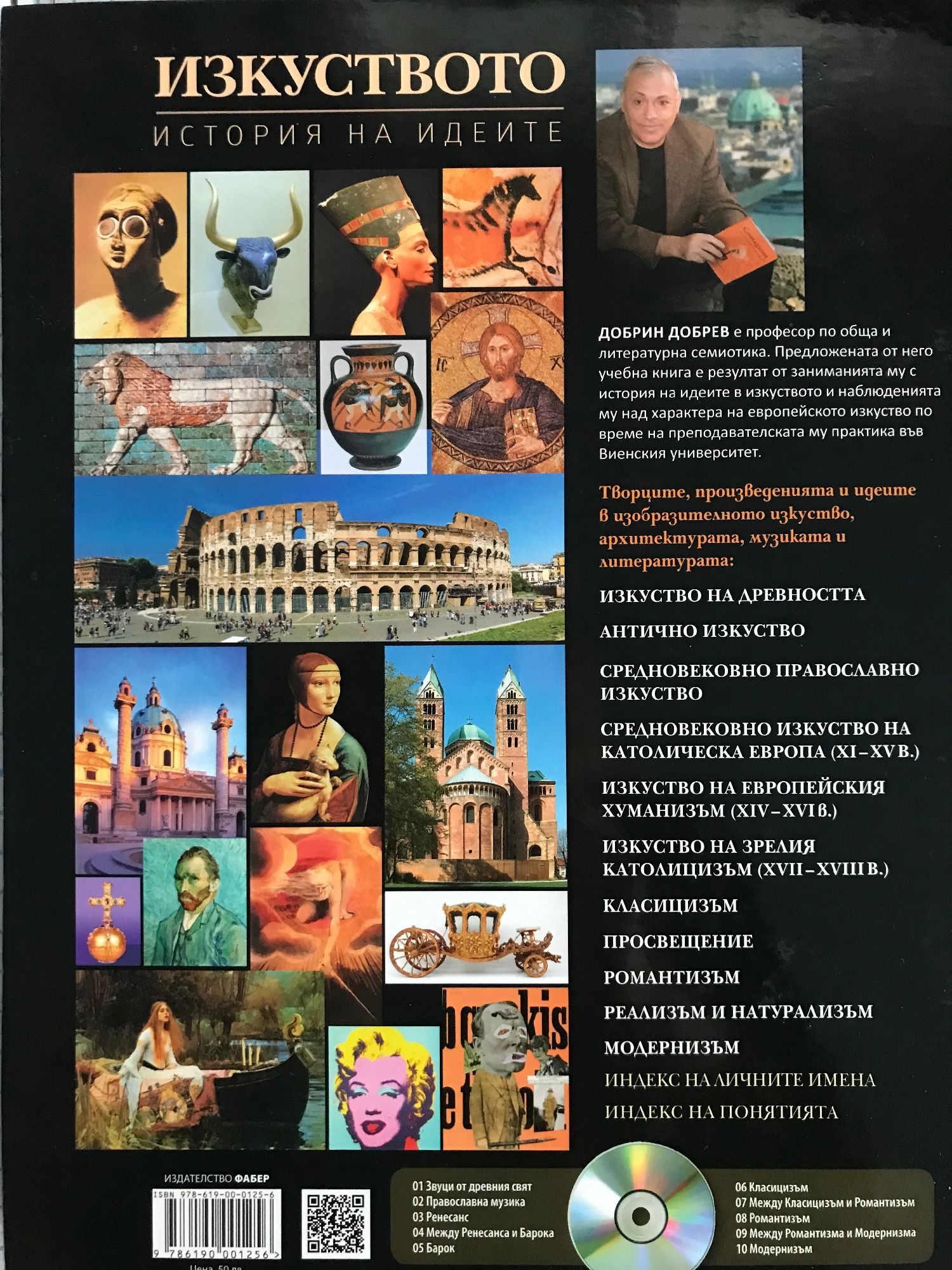 Добрин Добрев е професор по Обща и литературна семиотика. Книгата е резултат от заниманията му с История на идеите в изкуството и наблюденията му над характера на европейското изкуство по време на няколкогодишната му преподавателска практика във Виенския университет. Представени са основните видове изкуства. "Изкуството. История на идеите" разглежда спецификата на естетическите идеи и художествената практика на Древен Египет, Шумер, Вавилон, Античността, Православното и Католическото средновековие. Коментирани са особеностите на Романското изкуство и Готиката. Представени са концепцията за твореца и художествените постижения на Ренесанса и последвалия го Маниеризъм. Разгледани са естетическите идеи и художествените специфики на Барока, Рококото, Класицизма, Просвещението, Романтизма, Реализма и Натурализма. Специално внимание е обърнато на различните етапи от развитието на модерното изкуство чрез представянето на Импресионизма, Поантилизма, Символизма, Неокласицизма от края на ХІХ в., Сецесиона, Фовизма, Експресионизма, Кубизма, Футуризма, Кубофутуризма, Конструктивизма, Абстракционизма, Дадаизма, Сюрреализма, Абсурдизма, Оп-арта, Фотореализма, Поп-арта и Акционизма. Коментирана е и спецификата на прехода към постмодерното изкуство.