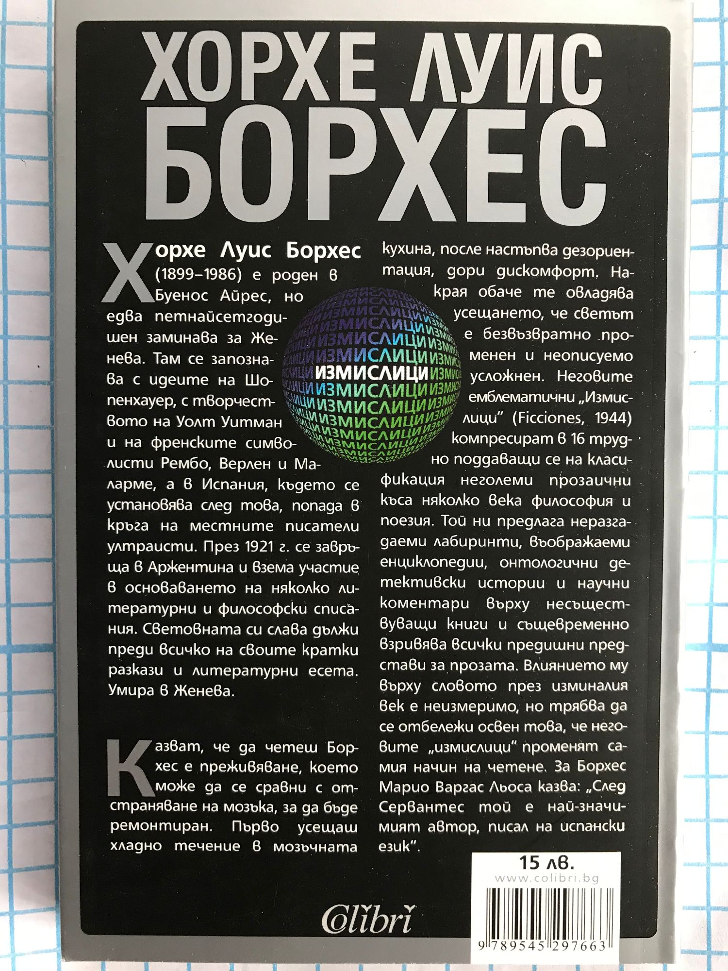 Казват, че да четеш Борхес е преживяване, което може да се сравни с отстраняване на мозъка, за да бъде ремонтиран. Първо усещаш хладно течение в мозъчната кухина, после настъпва дезориентация, дори дискомфорт. Накрая обаче те овладява усещането, че светът е безвъзвратно променен и неописуемо усложнен. Неговите емблематични „Измислици“ (Ficciones, 1944) компресират в 16 трудно поддаващи се на класификация неголеми прозаични къса няколко века философия и поезия. Той ни предлага неразгадаеми лабиринти, въображаеми енциклопедии, онтологични детективски истории и научни коментари върху несъществуващи книги и същевременно взривява всички предишни представи за прозата. Влиянието му върху словото през изминалия век е неизмеримо, но трябва да се отбележи освен това, че неговите „измислици“ променят самия начин на четене. За Борхес Марио Варгас Льоса казва: „След Сервантес той е най-значимият автор, писал на испански език“.
