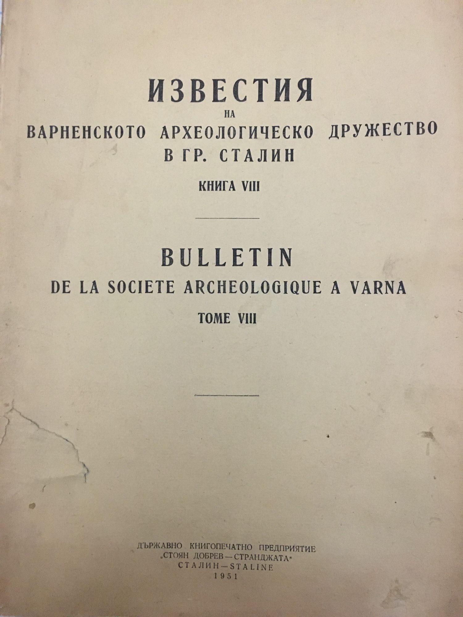 Известия на варненското археологическо дружество в гр. Сталин - книга VIII