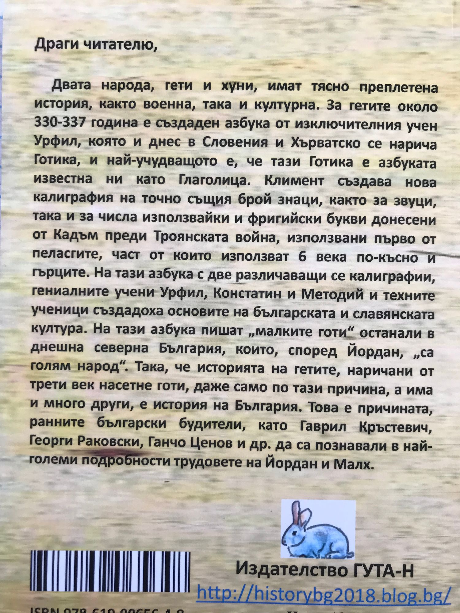 Двата народа, гети и хуни, имат тясно преплетена история, както военна, така и културна. За гетите около 330-337 година е създаден азбука от изключителния учен Урфил, която и днес в Словения и Хърватско се нарича Готика, и най-учудващото е, че тази Готика е азбуката известна ни като Глаголица. Климент създава нова калиграфия на точно същия брой знаци, както за звуци, така и за числа използвайки и фригийски букви донесени от Кадъм преди Троянската война, използвани първо от пеласгите, част от които използват 6 века по-късно и гърците. На тази азбука с две различаващи се калиграфии, гениалните учени Урфил, Констатин и Методий и техните ученици създадоха основите на българската и славянската култура. На тази азбука пишат „малките готи“ останали в днешна северна България, които, според Йордан, „са голям народ“. Така, че историята на гетите, наричани от трети век насетне готи, даже само по тази причина, а има и много други, е история на България. Това е причината, ранните български будители, като Гаврил Кръстевич, Георги Раковски, Ганчо Ценов и др. да са познавали в най-големи подробности трудовете на Йордан и Малх.