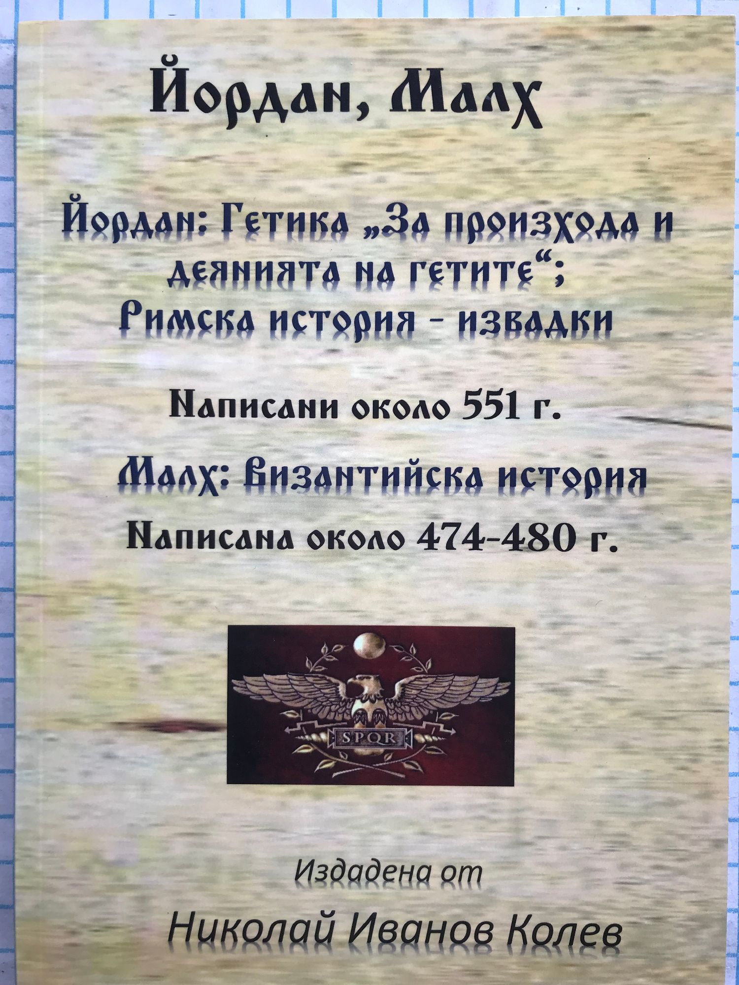 Йордан: Гетика "За произхода и деянията на гетите". Римска история - извадки, написани около 551 г. Малх: Византийска история, написана около 474 - 480 г.
