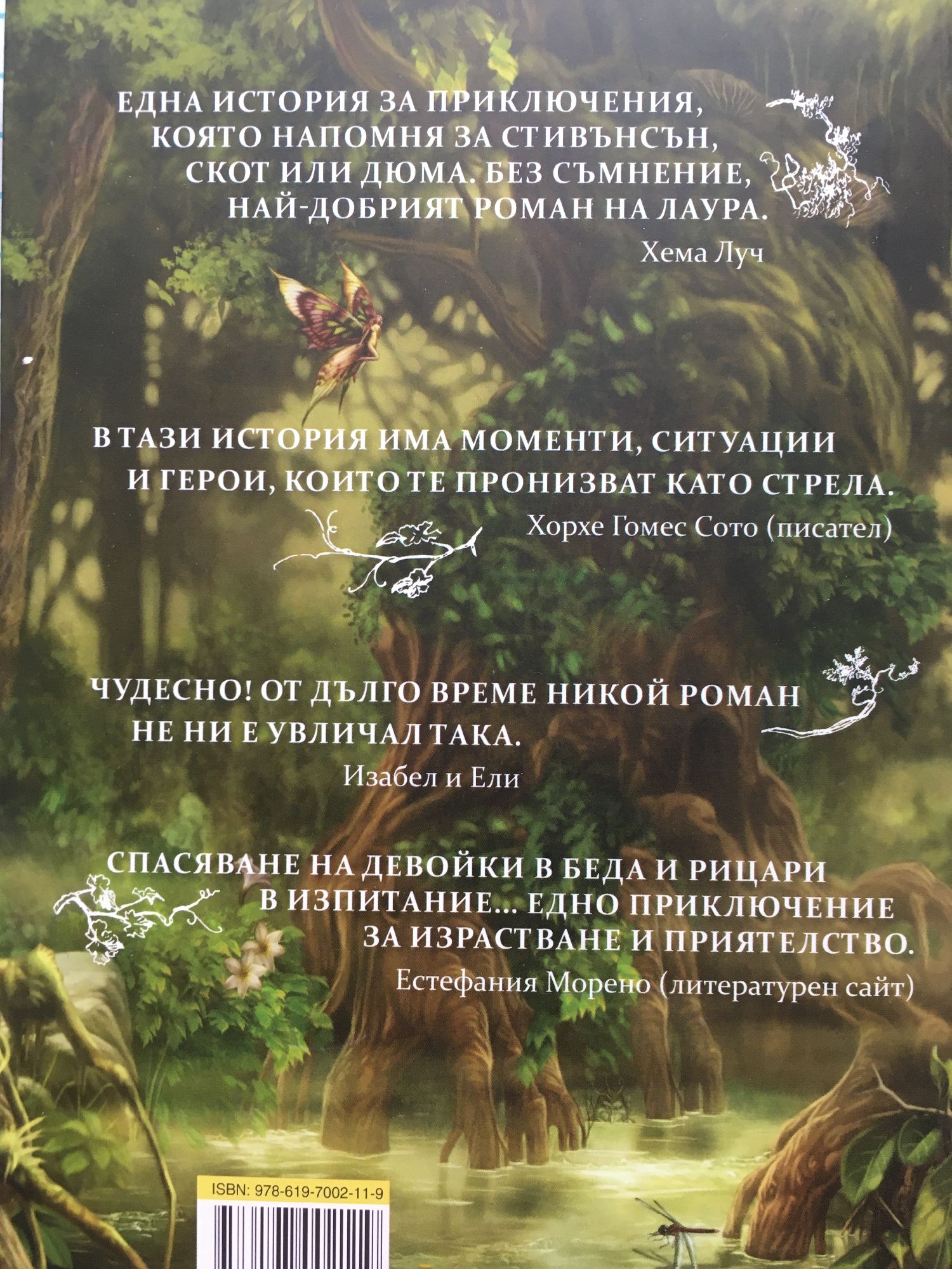 Една история за приключения, която напомня за Стивънсън, Скот или Дюма. Без съмнение най-добрият роман на Лаура. (Хема Луч) В тази история има моменти, ситуации и герои, които те пронизват като стрела. (Хорхе Гомес Сото - писател) Чудесно! От дълго време никой роман не ни е увличал така. Спасяване на девойки в беда и рицари в изпитание... Едно приключение за израстване и приятелство.
