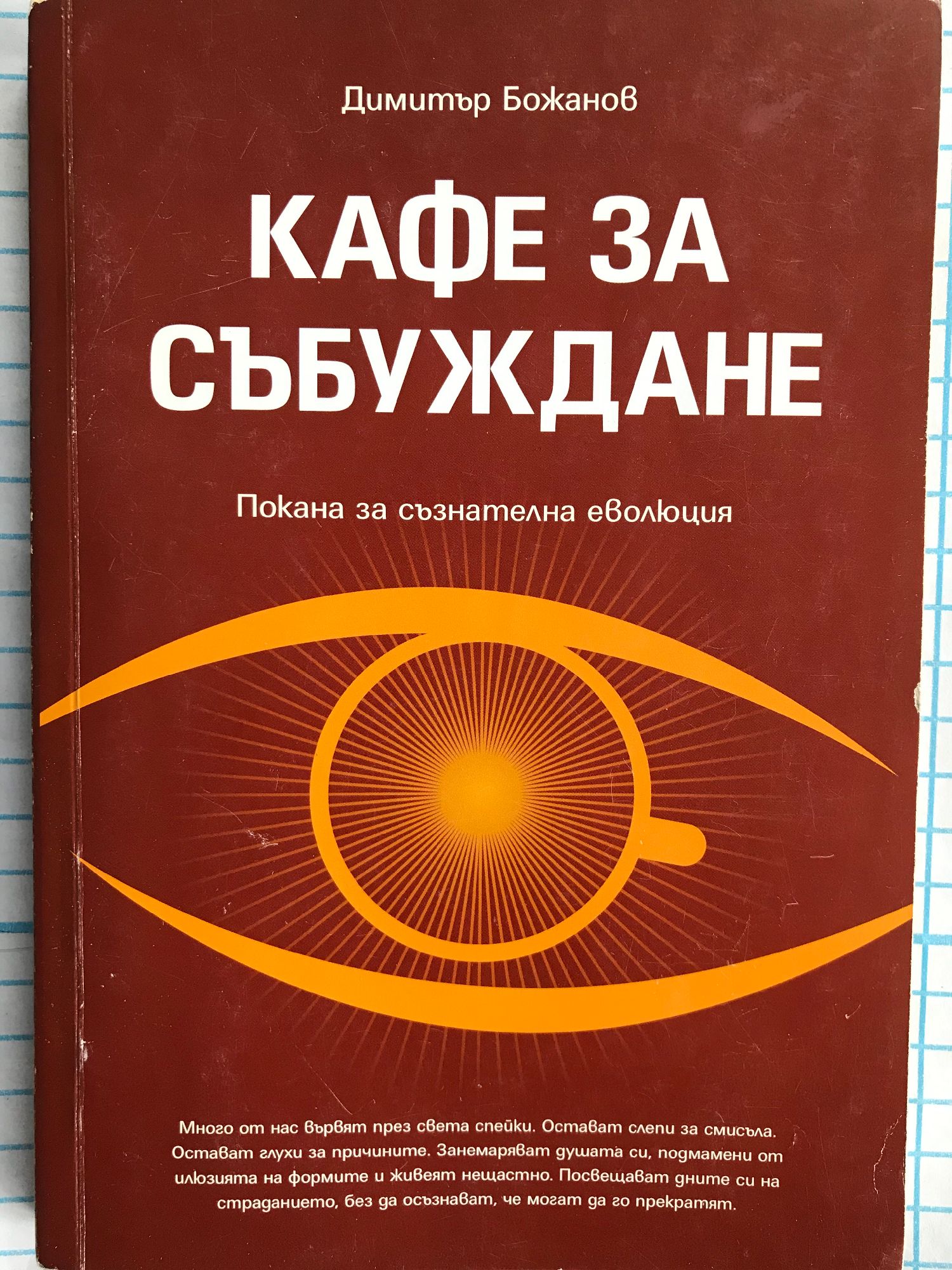 ТОВА Е КНИГА ЗА СМИСЪЛА НА ЖИВОТА. Тя е своеобразно пробуждане за неизменимата истина, която е в ядрото на всеки един от нас – в сърцето ни, в душата ни. Повечето от нас вървят през света спейки. Остават слепи за смисъл, глухи за причините. Занемаряват душата си, подмамени от илюзията на формите и живеят нещастно. Посвещават дните си на страданието, без да осъзнават, че могат да го прекратят. Не разбират, че имат право да направят личен избор във всеки един момент и да се избавят от тежестта, която носят в себе си. „Кафе за събуждане” ще им помогне да си спомнят и да се отърсят от вътрешната си неудовлетвореност. Да изхвърлят баласта зад борда и да започнат най-сетне да живеят така, както наистина искат. Ще им помогне да счупят черупката на илюзиите и да се освободят от бремето на невежеството. Това не е просто книга. Това е пътешествие към себе си. Екскурзия до автентичната ни същност. Преживяване, което нито ще забравите, нито ще можете да подминете просто така.