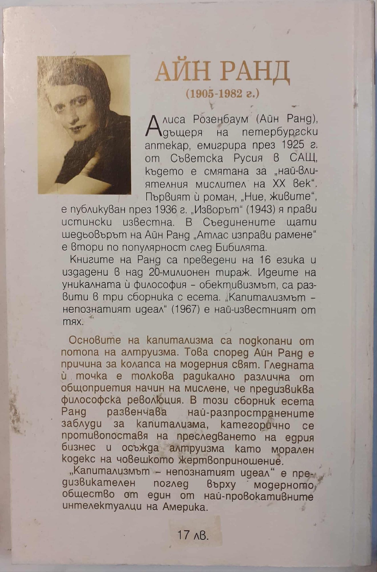 5,11 € / 9,99 лв.Добро състояние на книжното тяло. С бледо петно от намокряне в долния ляв ъгъл на листовете, постепенно изчезващо към средата на книгата. Забележки по предната корица; вж. снимка.