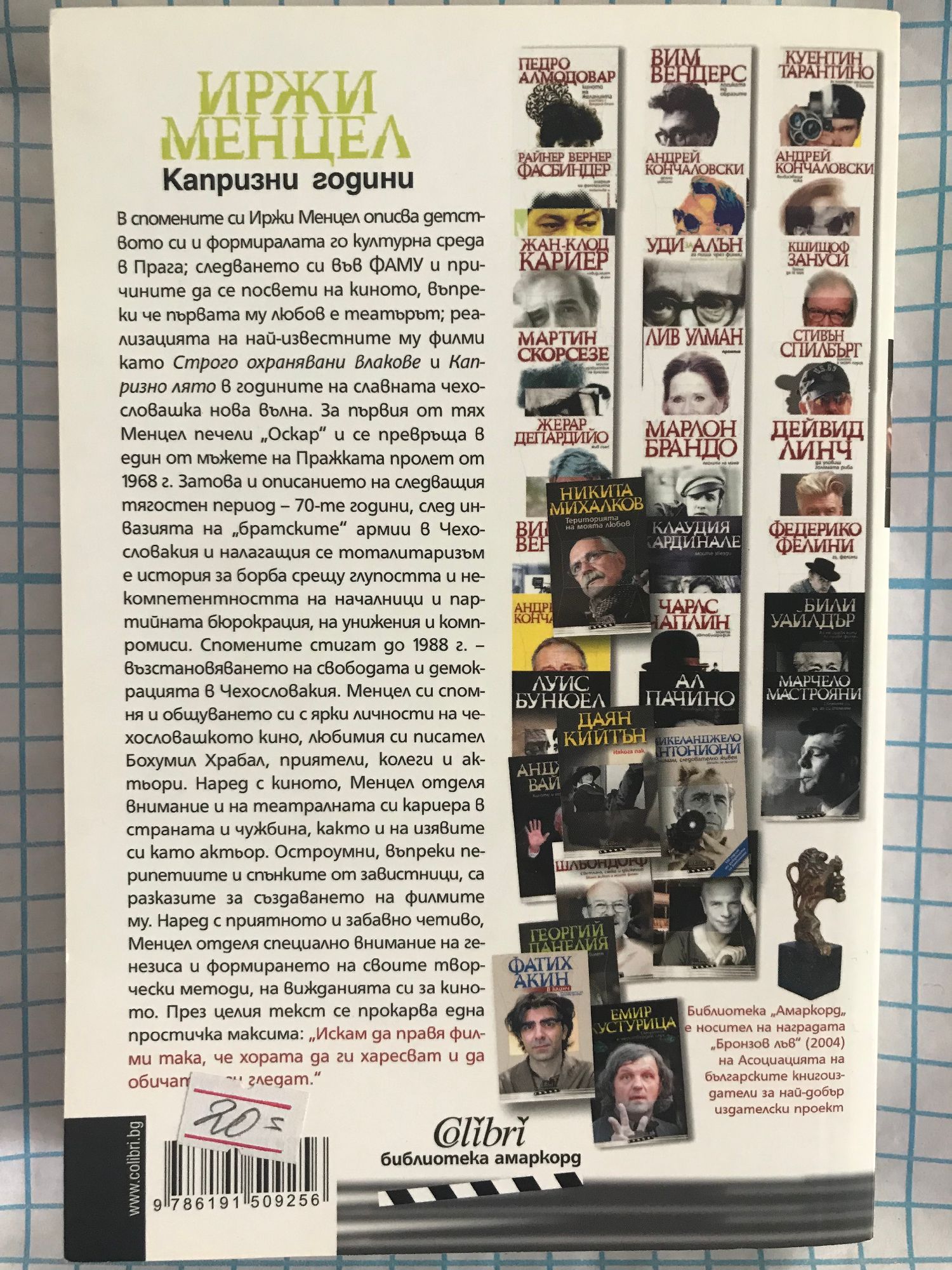 В спомените си Иржи Менцел описва детството си и формиралата го културна среда в Прага; следването си във ФАМУ и причините да се посвети на киното, въпреки че първата му любов е театърът; реализацията на най-известните му филми като Строго охранявани влакове и Капризно лято в годинитe на славната чехословашка нова вълна. За първия от тях Менцел печели „Оскар" и се превръща в един от мъжете на Пражката пролет от 1968 г. Затова и описанието на следващия тягостен период – 70-те години, след инвазията на „братските” армии в Чехословакия и налагащия се тоталитаризъм, е история за борба срещу глупостта и некомпетентността на началници и партийната бюрокрация, на унижения и компромиси. Спомените стигат до 1988 г. - възстановяването на свободата и демокрацията в Чехословакия. Менцел си спомня и общуването си с ярки личности на чехословашкото кино, любимия си писател Бохумил Храбал, приятели, колеги и актьори. Наред с киното, Менцел отделя внимание и на театралната си кариера в страната и чужбина, както и на изявите си като актьор. Остроумни, въпреки перипетиите и спънките от завистници, са разказите за създаването на филмите му. Наред с приятното и забавно четиво, Менцел отделя специално внимание на генезиса и формирането на своите творчески методи, на вижданията си за киното. През целия текст се прокарва една простичка максима: „Искам да правя филми така, че хората да ги харесват и да обичат да ги гледат.“