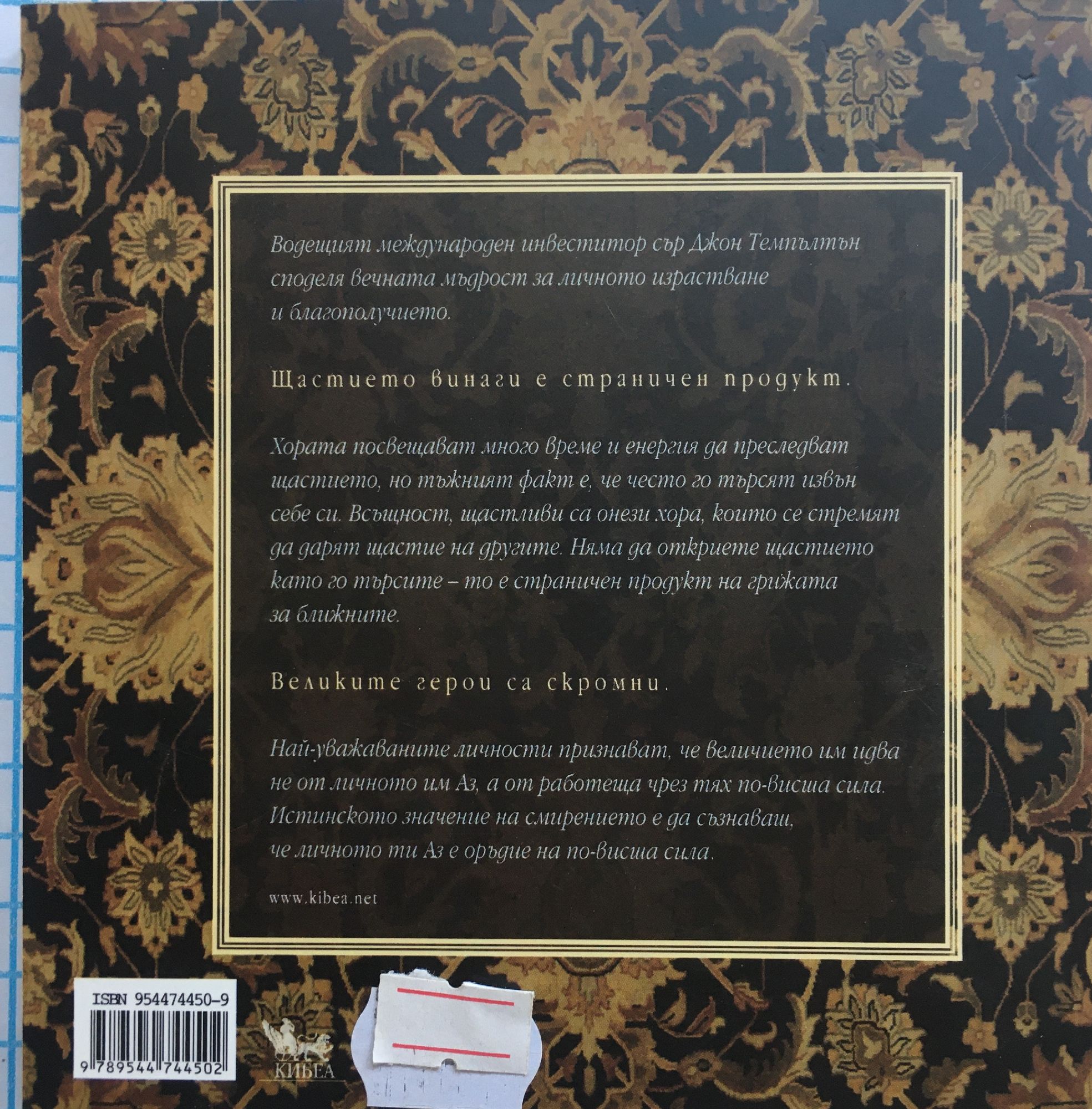 Водещият международен инвеститор сър Джон Темпълтън споделя вечната мъдрост за личното израстване и благополучието. Щастието винаги е страничен продукт. Хората посвещават много време и енергия да преследват щастието, но тъжният факт е, че често го търсят извън себе си. Всъщност, щастливи са онези хора, които се стремят да дарят щастие на другите. Няма да откриете щастието като го търсите - то е страничен продукт на грижата за ближните. Великите герои са скромни. Най-уважаваните личности признават, че величието им идва не от личното им Аз, а от работеща чрез тях по-висша сила. Истинското значение на смирението е да съзнаваш, че личното ти Аз е оръдие на по-висша сила.