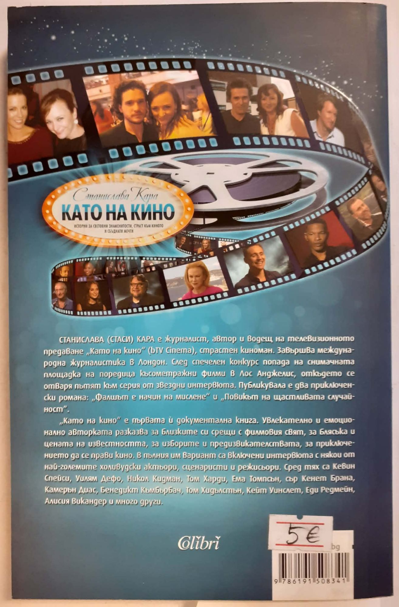 „Като на кино“ е първата документална книга на Станислава (Стаси) Кара. Увлекателно и емоционално авторката разказва за близките си срещи с филмовия свят, за блясъка и цената на известността, за изборите и предизвикателствата, за приключението да се прави кино. В пълния им вариант са включени интервюта с някои от най-големите холивудски актьори, сценаристи и режисьори. Сред тях са Кевин Спейси, Уилям Дефо, Никол Кидман, Том Харди, Ема Томпсън, сър Кенет Брана, Камерън Диас, Бенедикт Къмбърбач, Том Хидълстън, Кейт Уинслет, Еди Редмейн, Алисия Викандер и много други.