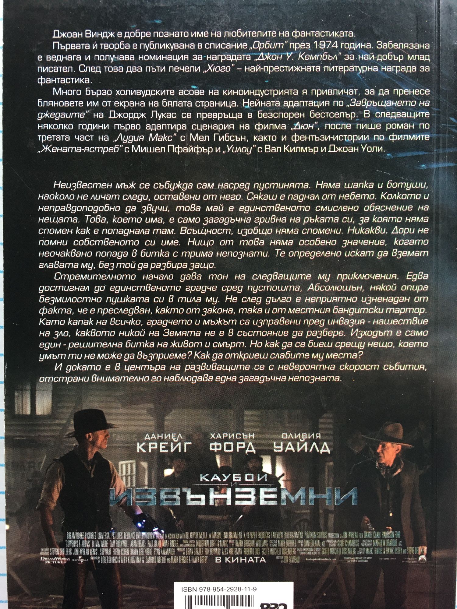 Авторът на книгата Джоан Виндж е добре познато име на любителите на фантастиката.Първата й творба е публикувана в списание „Орбит” през 1974 г. Забелязана е веднага и получава номинация за наградата „Джон У. Кемпбъл” за най-добър млад писател. След това два пъти печели „Хюго” – най-престижната литературна награда за фантастика. Много бързо холивудските асове на киноиндустрията я привличат, за да пренесе бляновете им от екрана на бялата страница.Нейната адаптация по „Завръщането на джедаите” на Джордж Лукас се превръща в безспорен бестселър. В следващите няколко години първо адаптира сценария на филма „Дюн”, после пише роман по третата част на „Лудия Макс” с Мел Гибсън, както и фентъзи-истории по филмите „Жената-ястреб” с Мишел Пфайфър и „Уилоу” с Вал Килмър и Джоан Уоли. На 12 август в България се състоя кинопремиерата на филма, в който участие вземат Харисън Форд, Даниел Крейг и Оливия Уайлд.