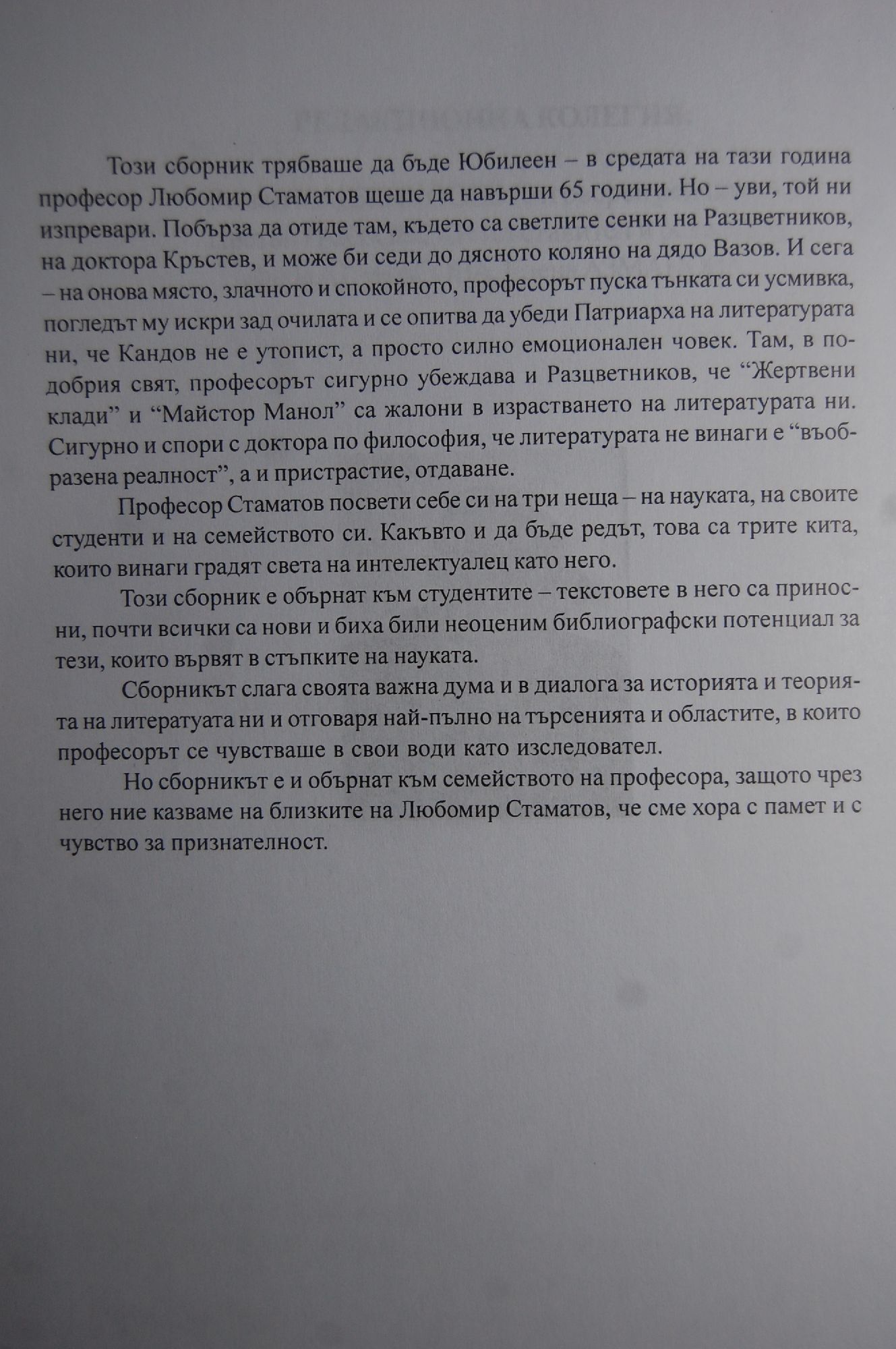 Сборник в памет на проф. Л.Стаматов