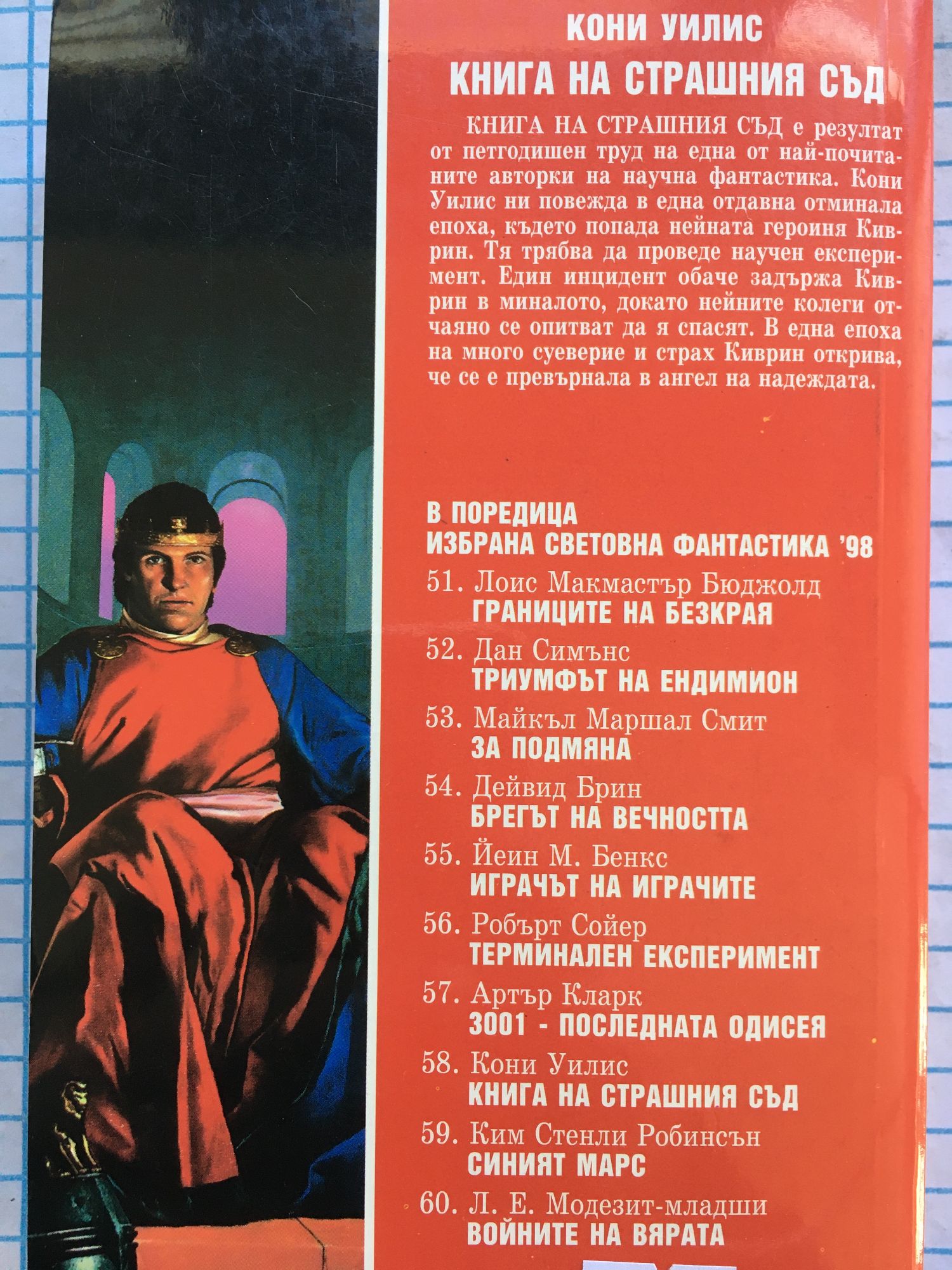 КНИГА НА СТРАШНИЯ СЪД е резултат от петгодишен труд на една от най-почитаните и най-титуловани авторки на нучна фантастика. Кони Уилис ни повежда в една отдавна отминала епоха, където попада нейната героиня Киврин. Тя трябва да проведе научен експеримент. Един инцидент обаче задържа Киврин в миналото, докато нейните колеги отчаяно се опитват да я спасят. В една епоха на много суеверие и страх Киврин открива, че се е превърнала в ангел на надеждата.