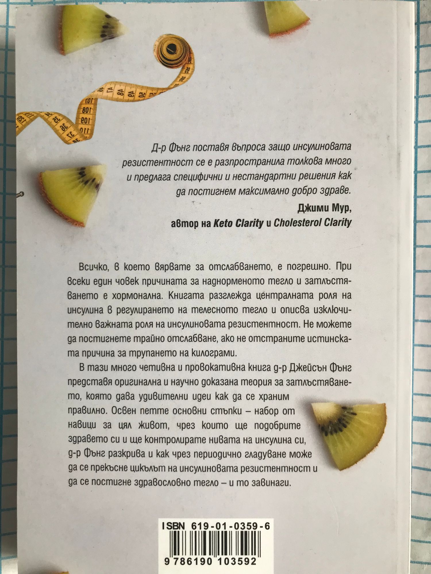 Всичко, в което вярвате за отслабването, е погрешно. При всеки един човек причината за наднорменото тегло и затлъстяването е хормонална. Книгата разглежда централната роля на инсулина в регулирането на телесното тегло и описва изключително важната роля на инсулиновата резистентност. Не можете да постигнете трайно отслабване, ако не отстраните истинската причина за трупането на килограми. В тази много четивна и провокативна книга д-р Джейсън Фънг представя оригинална и научно доказана теория за затлъстяването, която дава удивителни идеи как да се храним правилно. Освен петте основни стъпки - набор от навици за цял живот, чрез които ще подобрите здравето си и ще контролирате нивата на инсулина си, д-р Фънг разкрива и как чрез периодично гладуване може да се прекъсне цикълът на инсулиновата резистентност и да се постигне здравословно тегло - и то завинаги.