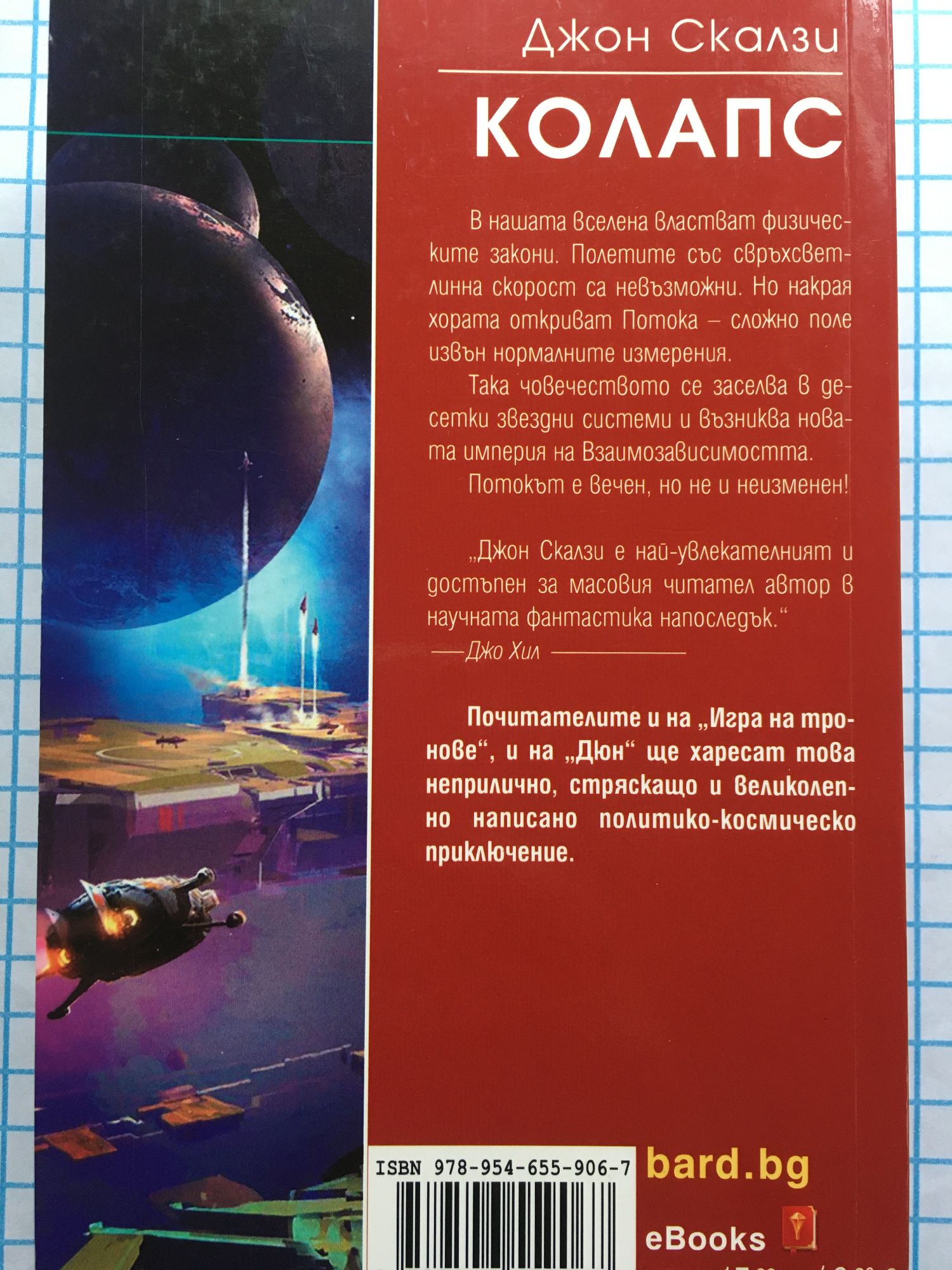 В нашата вселена властват физическите закони. Полетите със свръхсветлинна скорост са невъзможни. Но накрая хората откриват Потока – сложно поле извън нормалните измерения. Така човечеството се заселва в десетки звездни системи и възниква новата империя на Взаимозависимостта. Потокът е вечен, но не и неизменен! „Джон Скалзи е най-увлекателният и достъпен за масовия читател автор в научната фантастика напоследък.“ Джо Хил