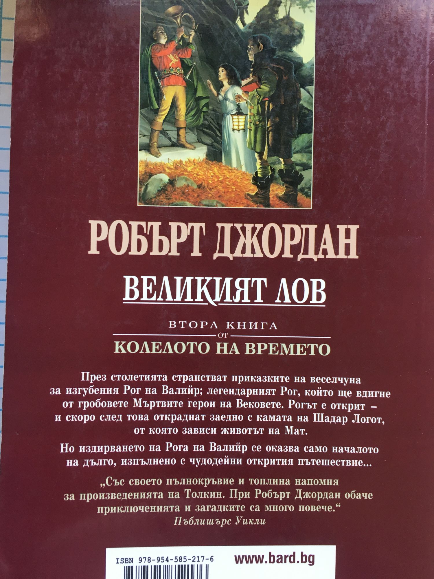 През столетията странстват приказките на веселчуна за изгубения Рог на Валийр: легендарният Рог, който ще вдигне от гробовете Мъртвите герои на Вековете. Рогът е открит - и скоро след това откраднат заедно с камата на Шадар Логот, от която зависи животът на Мат. Но издирването на Рога на Валийр се оказва само началото на дълго, изпълнено с чудодейни открития пътешествие… Със своето пълнокръвие и топлина романът напомня за произведенията на Толкин. При Робърт Джордан обаче приключенията и загадките са много повече. Пъблишърс Уикли