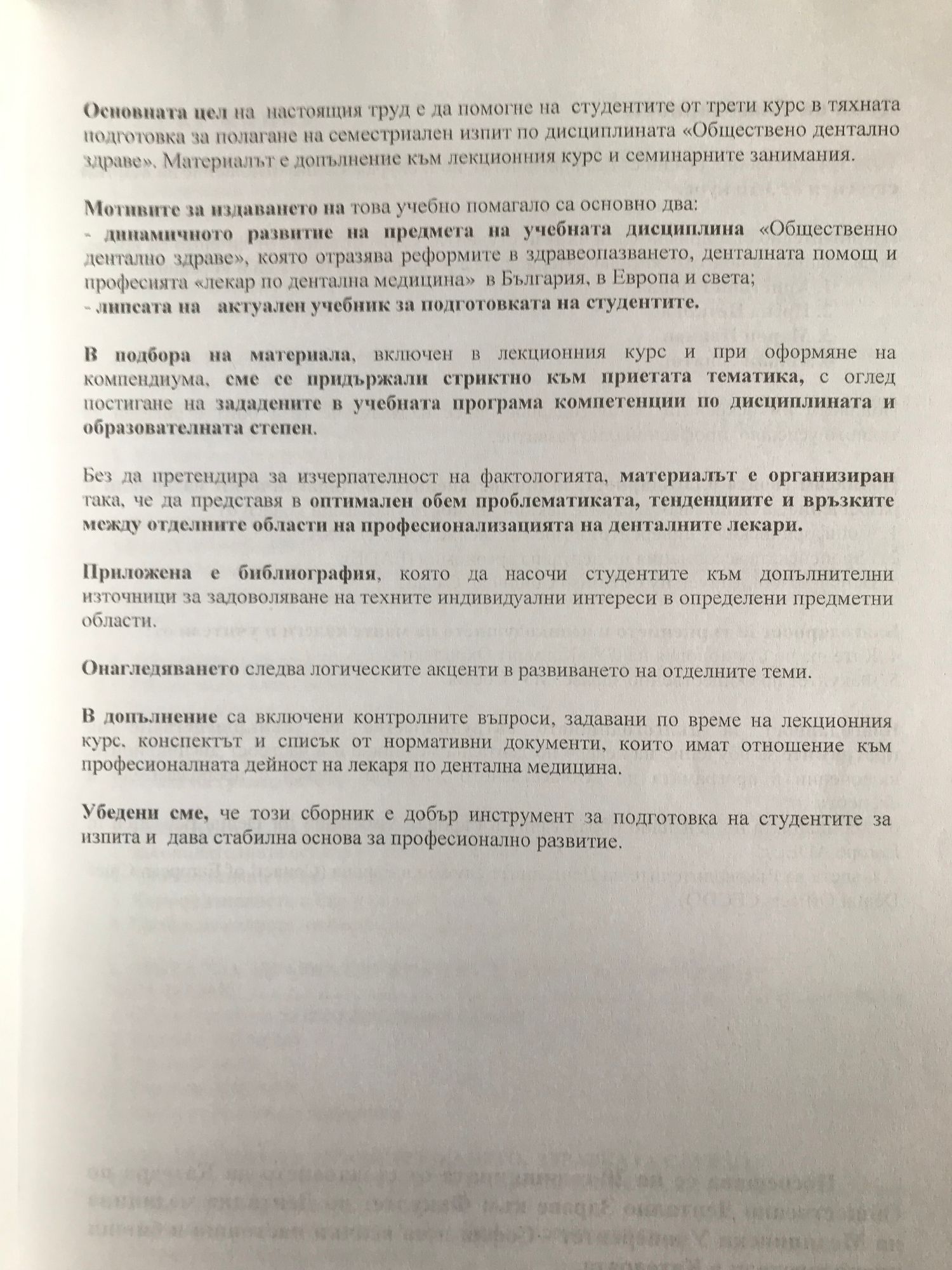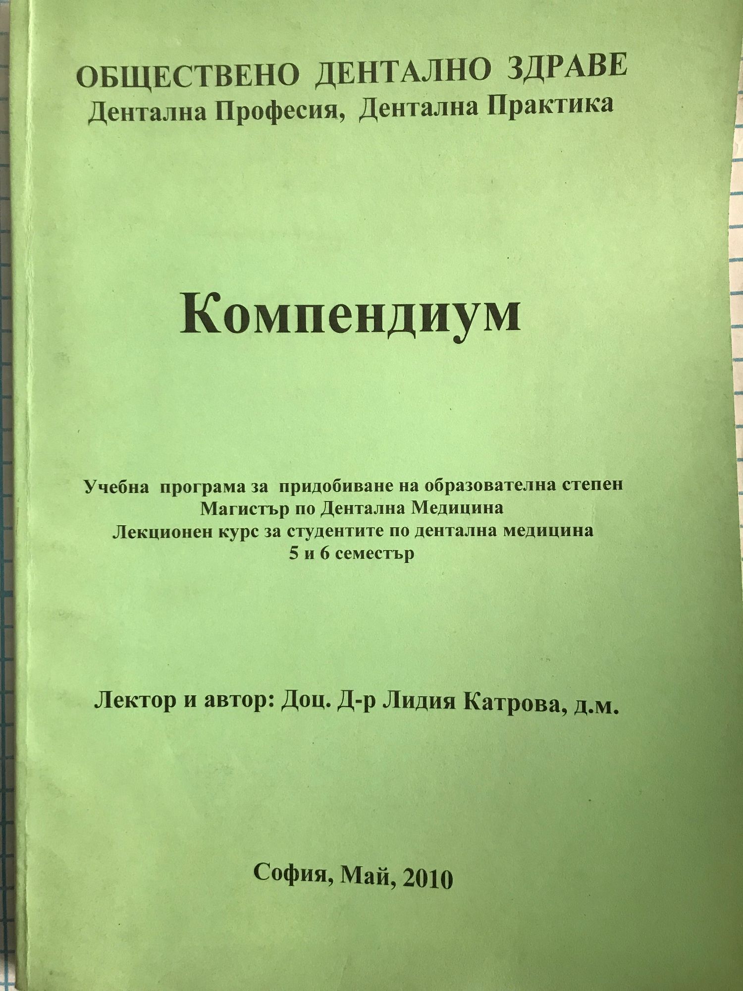 Учебна програма за придобиване на образувателна степен Магистър по Дентална Медицина.Лекционен курс за студентите по дентална медицина 5 и 6 семестър