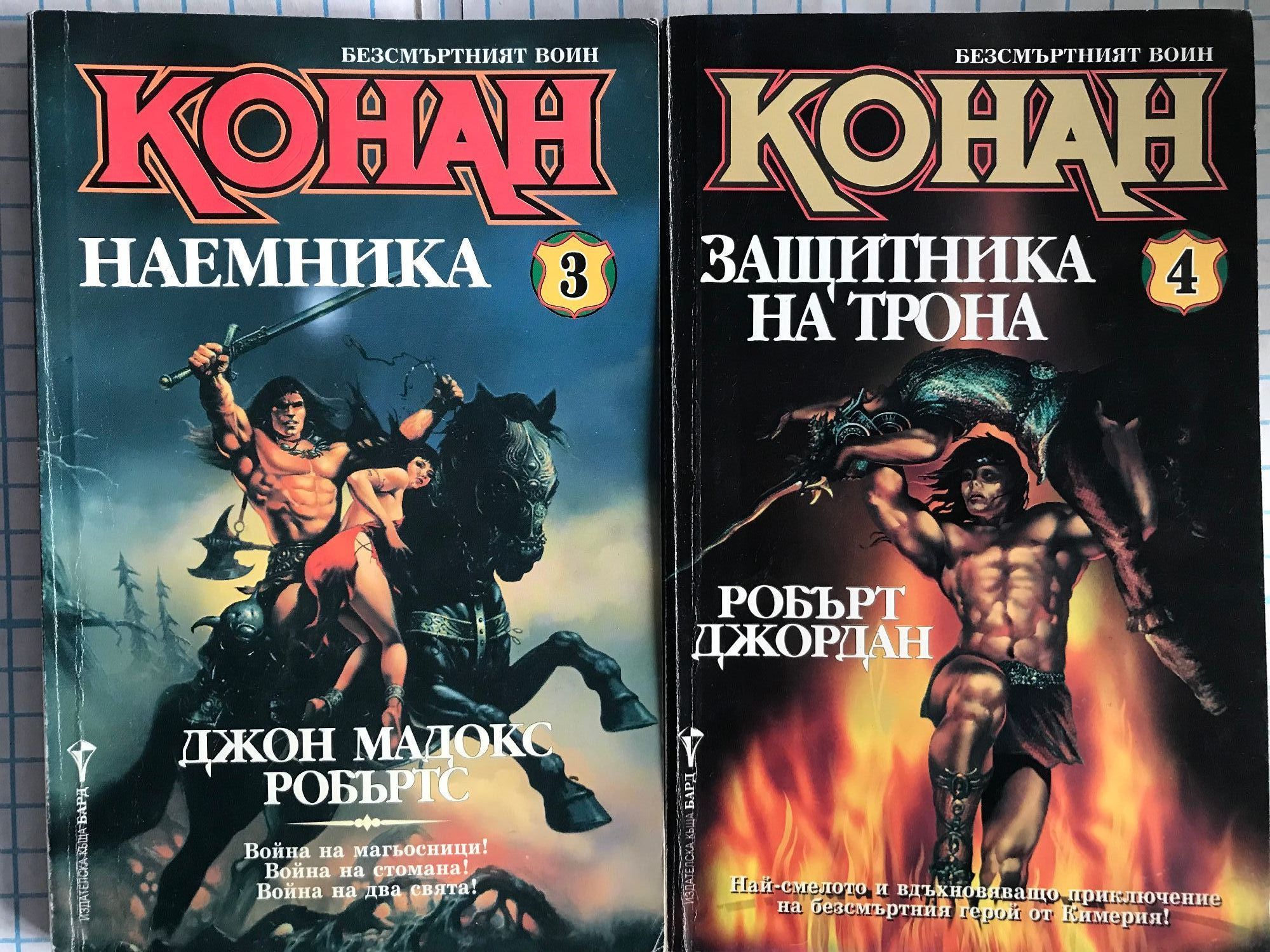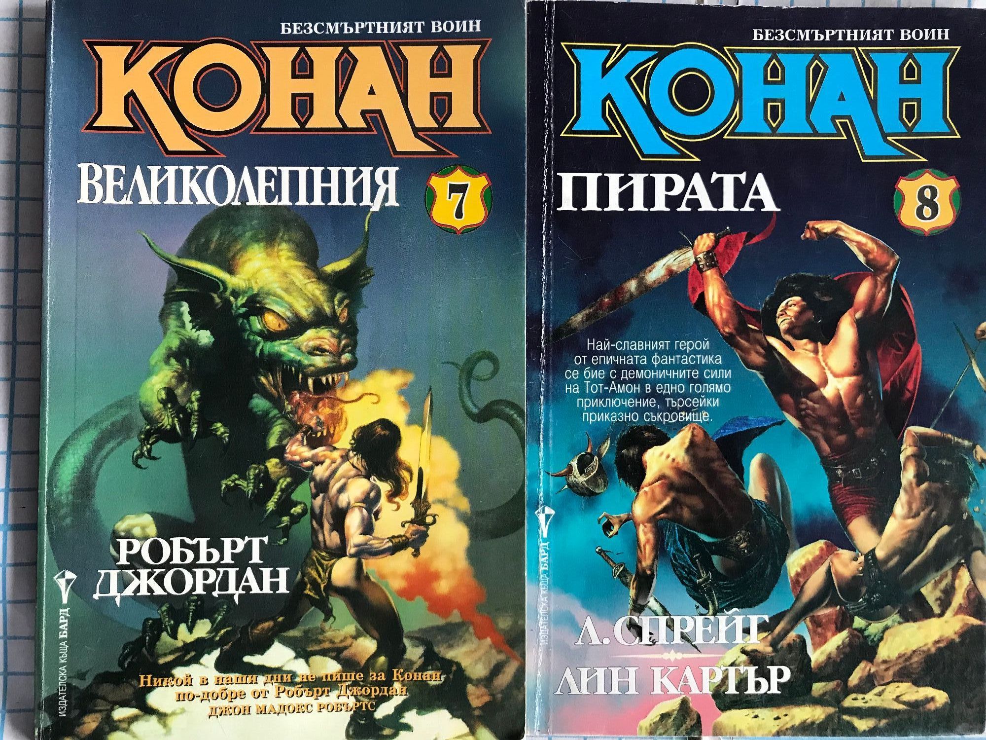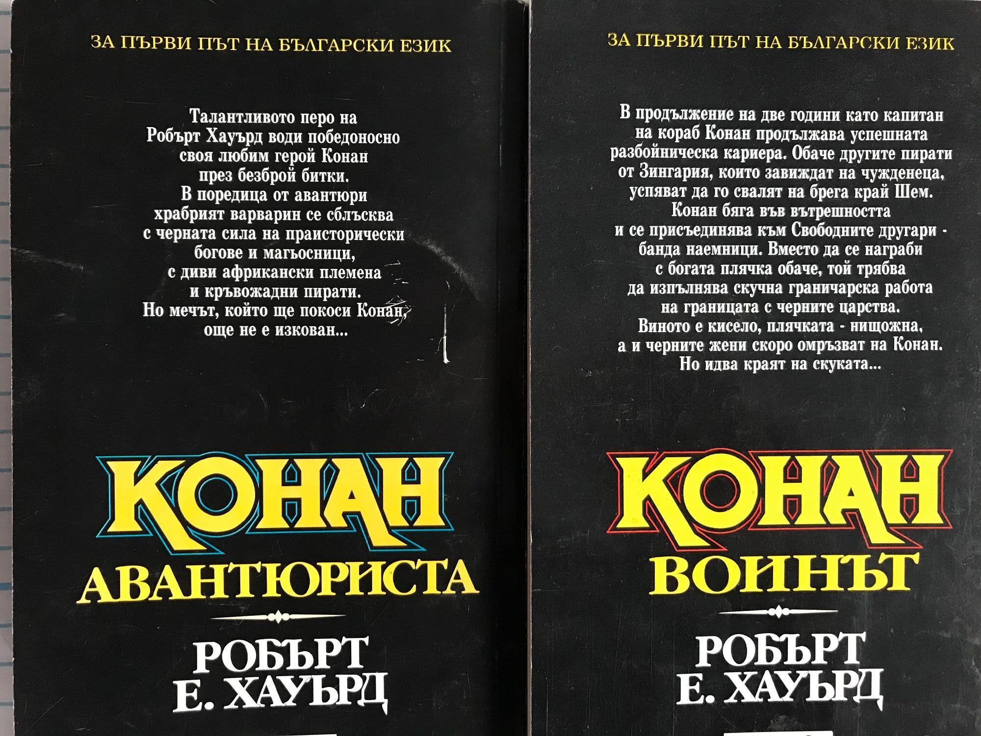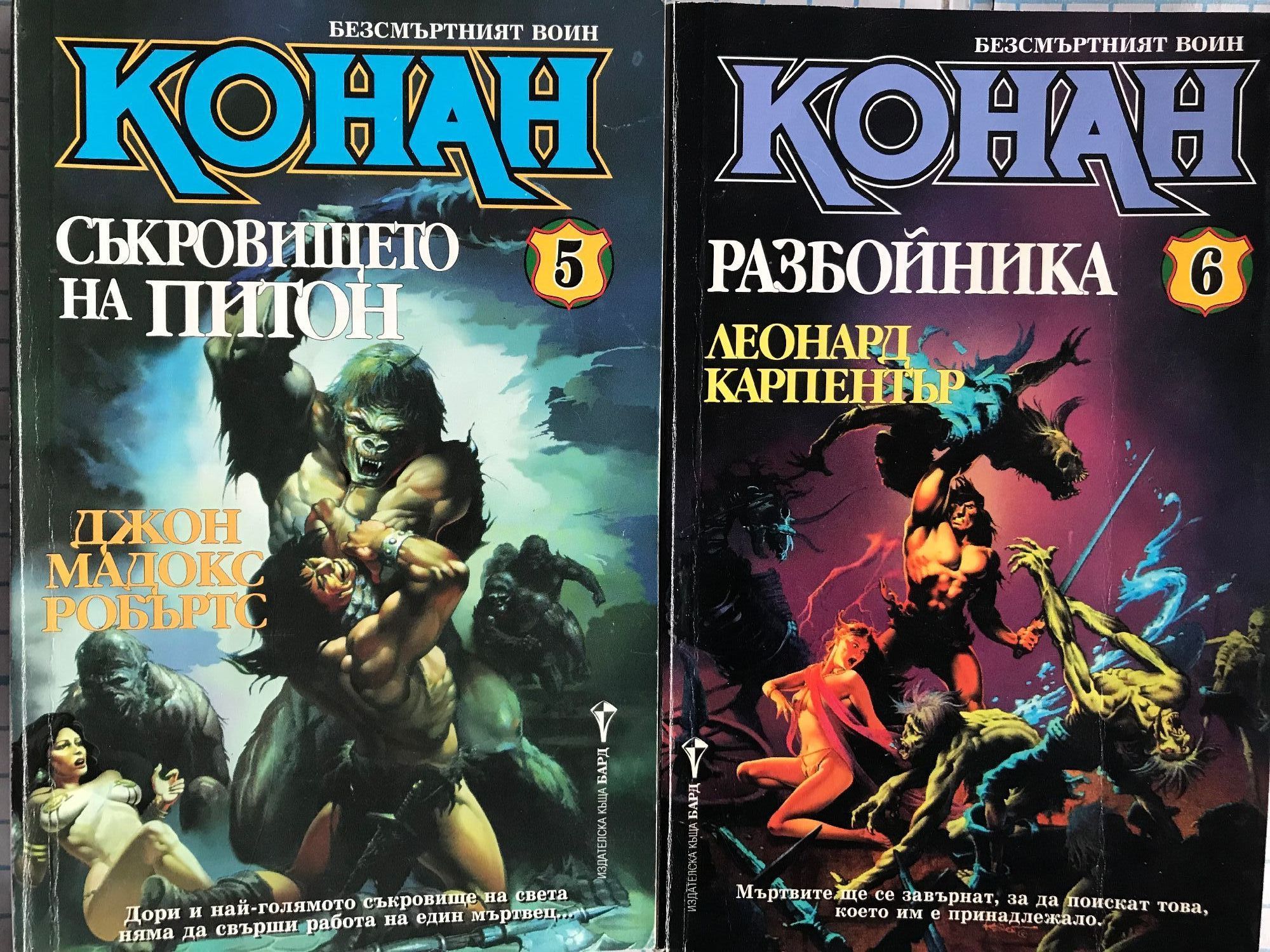 Разрушителя - книга първа от приключенията на Безсмъртния войн. Непобедимия - Най-ожесточената борба на могъщия варварин. Наемника - Война на магьосници! Война на стоманата! Война на два свята! Защитника на Трона - Най-смелото и вдъхновяващо приключение на безсмъртния герой от Кимерия! Съкровището на Питон - Дори и най-голямото съкровище на света няма да свърши работа на един мъртвец. Разбойника - Мъртвите ще се завърнат, за да поискат това, което им е принадлежало. Великолепния - Никой в наши дни не пише за Конан по-добре от Робърт Джордан. Пирата - Най-славния герой от епичната фантастика се бие с демоничните сили на Тот-Амон в едно голямо приключение, търсейки приказно съкровище. Авантюриста - Варварската сила и бързина на Конан сломяват съпротивата на хора и богове. Воинът - Нови приключения в земите на черните царства.