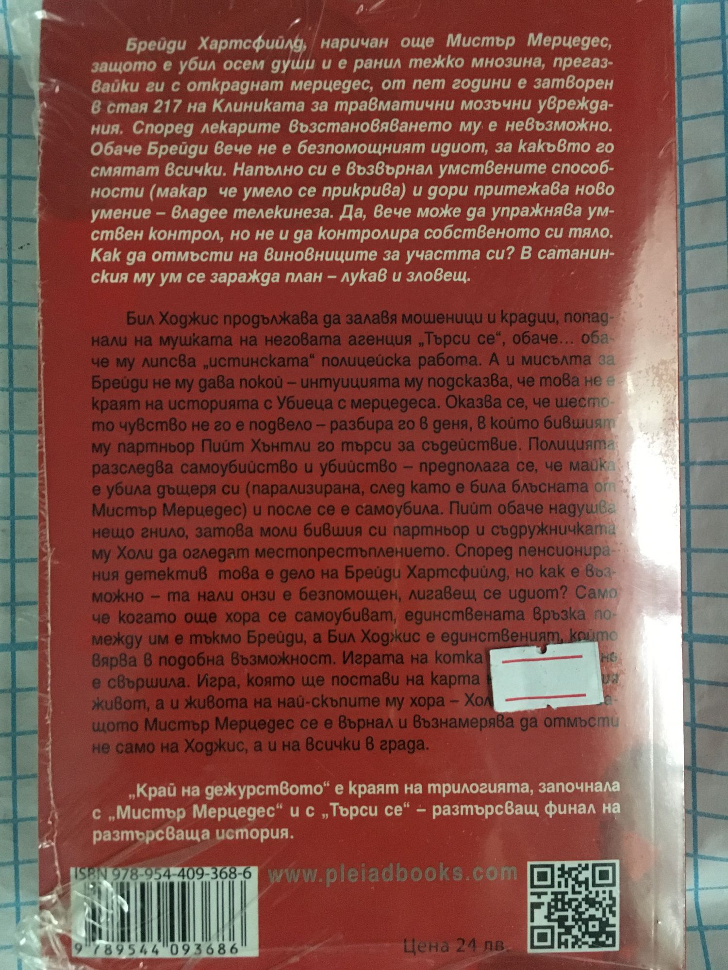В стая 217 на Клиниката за травматични мозъчни увреждания се е пробудило нещо. Нещо зло. Брейди Хартсфийлд – мистър Мерцедес, виновникът за клането пред Общинския център, при което загиват осем души и мнозина са тежко ранени, пет години съществува като „зеленчук“ в болничната си стая. Лекарите не вярват, че някога ще се възстанови. Само че той излиза от комата и без да напуска стаята, всява ужас и хаос с новопридобитите си умения. И крои планове за отмъщение – ще си го върне не само на най-големия си враг, детектив в оставка Ходжис, а и на целия град.