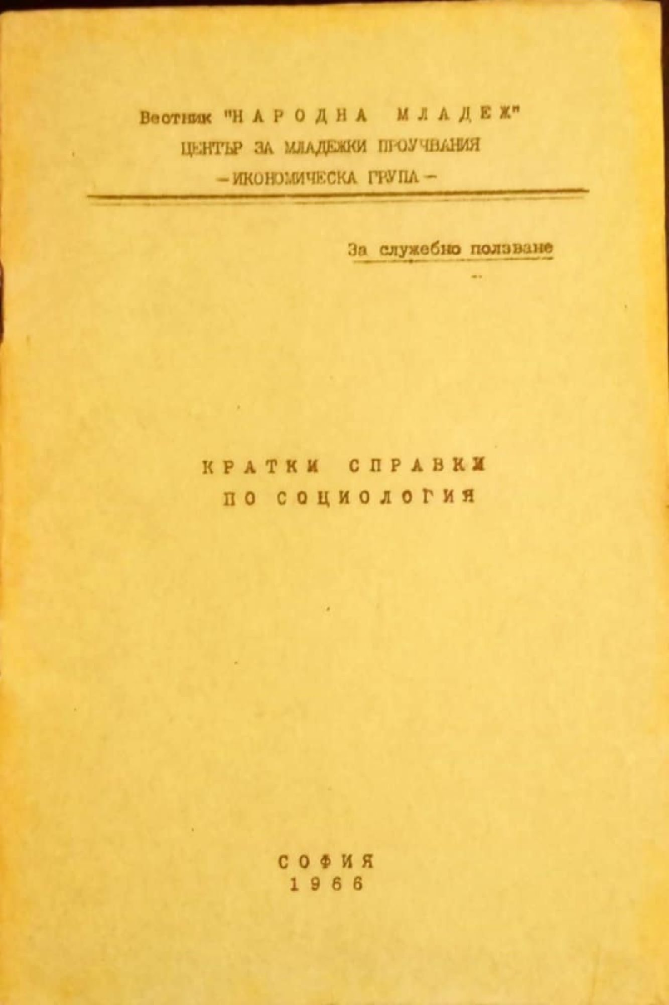 - издателство: Вестник "Народна младеж", Център за младежки проучвания, Икономическа група