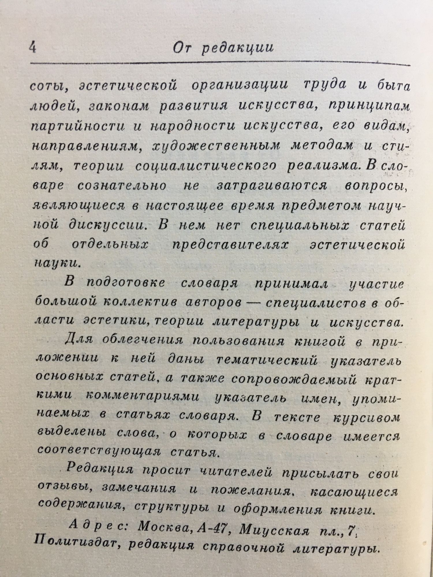 Краткий словарь по эстетике