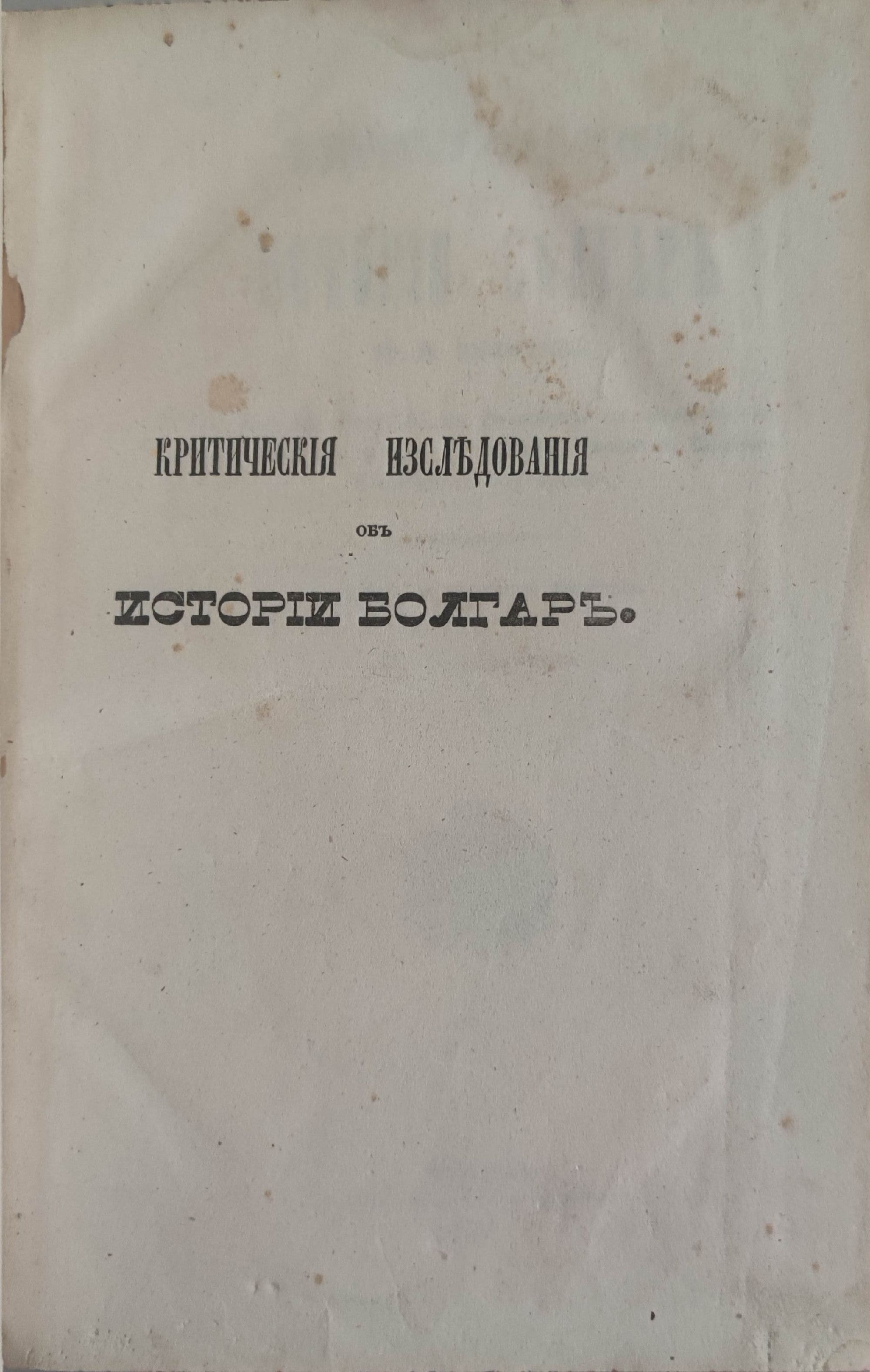 Критическия изследвания объ истории болгаръ/ Критически изследвания върху историята на българите
