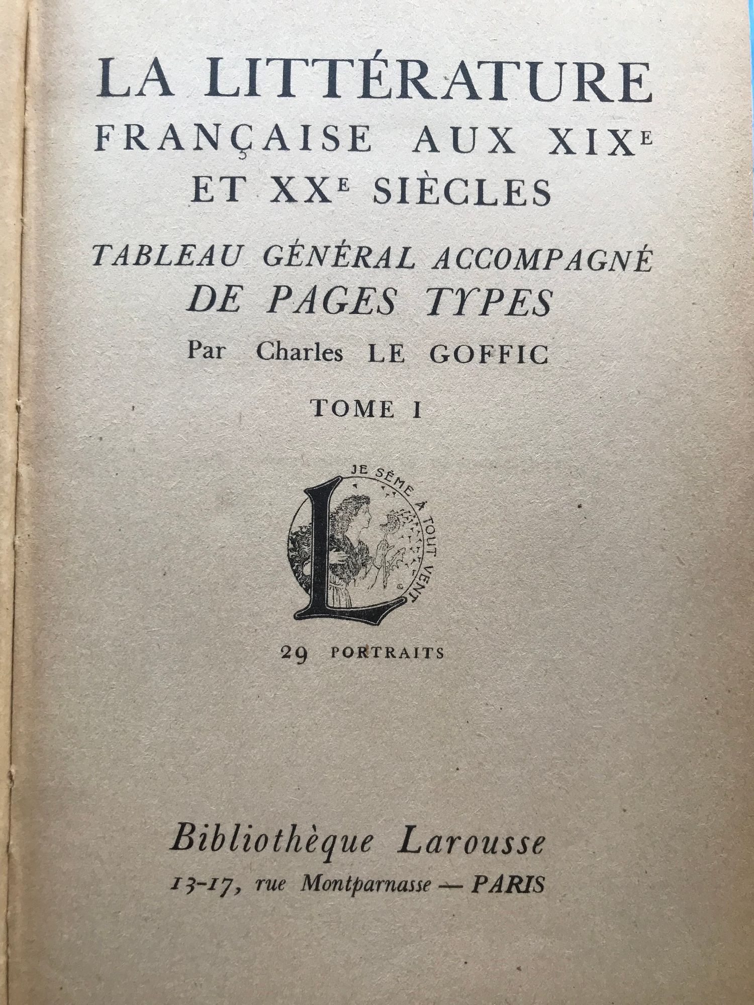 La Litterature francaise aux XIX et XX siecles - tome 1