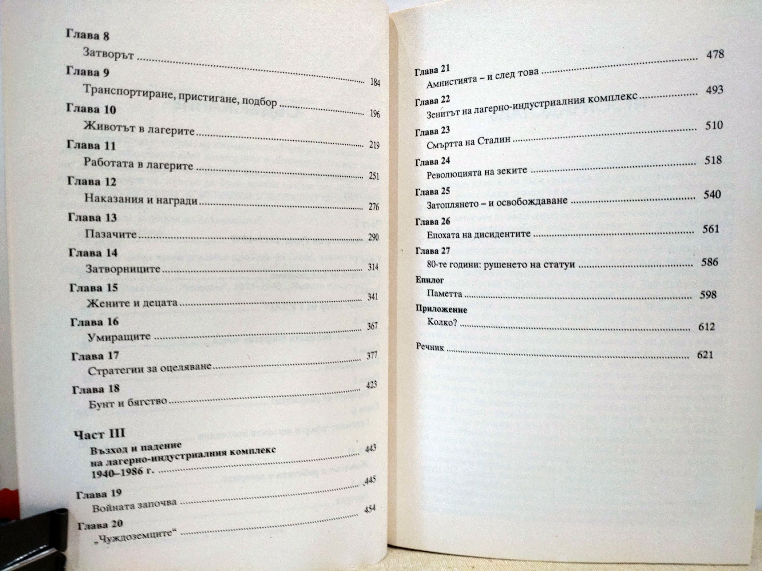 Гулаг, тази огромна мрежа от съветски концентрационни лагери, е била система за държавна репресивна политика, надмината само от Холокоста. ГУЛАГ става известен на света през 1972 г. с публикуването на "Архипелагът Гулаг" на Ал. Солженицин. След разпадането на Съветския Съюз са публикувани множество спомени и изследвания за Главное управление лагерей (съкр.ГУЛАГ), но книгата на Ан Епълбаум е първата напълно документална история на съветските трудови лагери от възникването им след Руската революция до разпадането им в годините на гласността. "ГУЛАГ" беше незабавно призната за епохална творба в областта на съветската история. През 1929 г. Сталин решава да развие лагерната система, използвайки принудителен труд, за да тласне напред съветската индустриализация и да експлоатира природните ресурси на слабо населените северни райони на страната. Арестувани и съдени по чудовищно абсурдни обвинения, в лагерите са изпратени политически неудобни, закъсняли за работа, съпруги на осъдени, осиротели и безпризорни деца, селяни, обвинени в кулачество, "вредители" и "шпиони"... Книгата е изпълнена със смразяващи разкази на преминали през лагерите и оцелели. ГУЛАГ е бил държава в държавата, отделна цивилизация със свои закони, обичаи, литература, фолклор, жаргон и морал. Тема след тема, Ан Епълбаум разкрива всекидневието в тази страна на ужаса: как затворниците са работили, как са се хранили, как са живеели, натъпкани в бараки, заедно със закоравели криминални престъпници, как са оцелявали, как са умирали. До смъртта на Сталин през 1953 г. около 18 милиона души минават през лагерите, от тях приблизително 4,5 милиона никога не се връщат.
