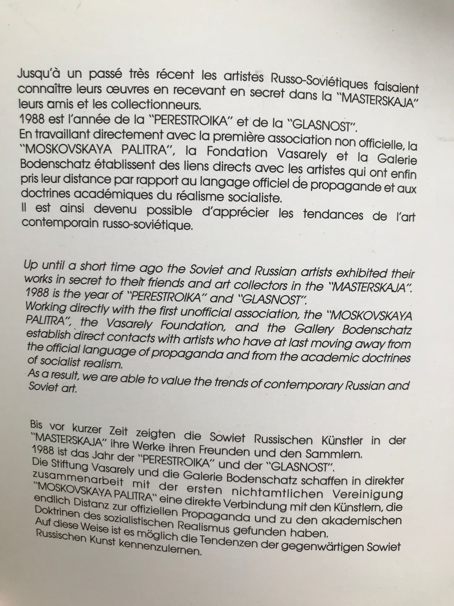 L'avant-Garde Russe et Sovietique 1970 - 1980