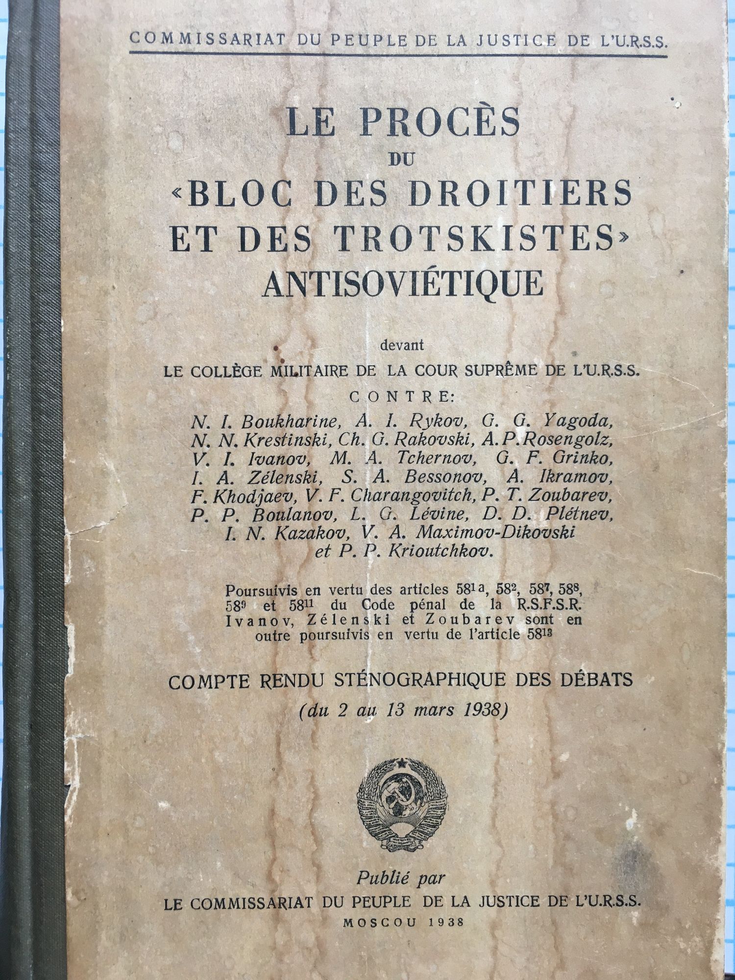 Le Proces du "Bloc des Droitiers et des Trotskistes" Antisovietique