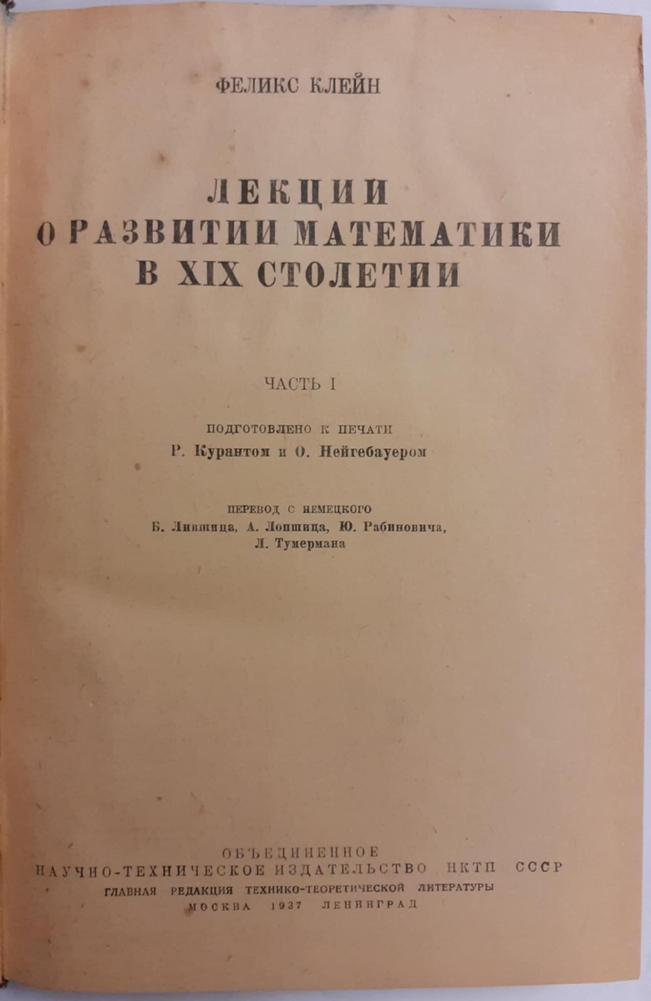 Лекции о развитии математики в XIX столетии. Часть 1