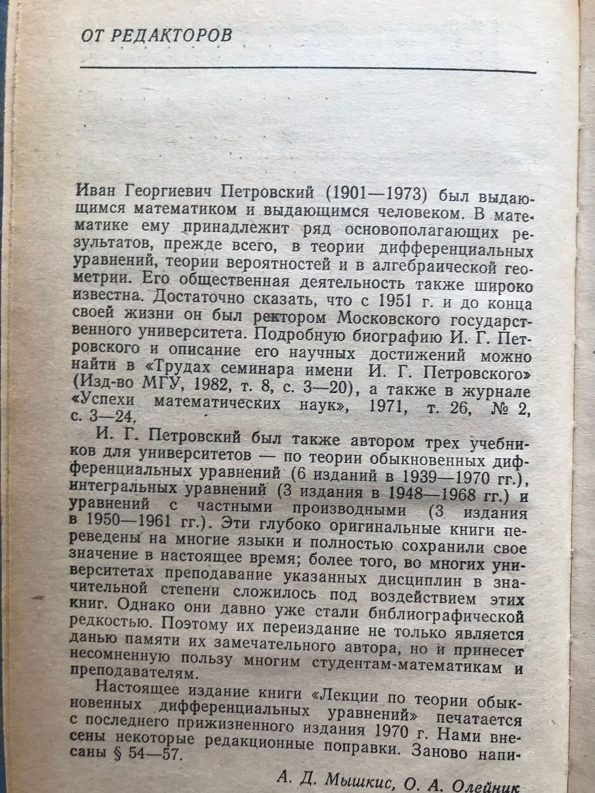 от И. Г. Петровский